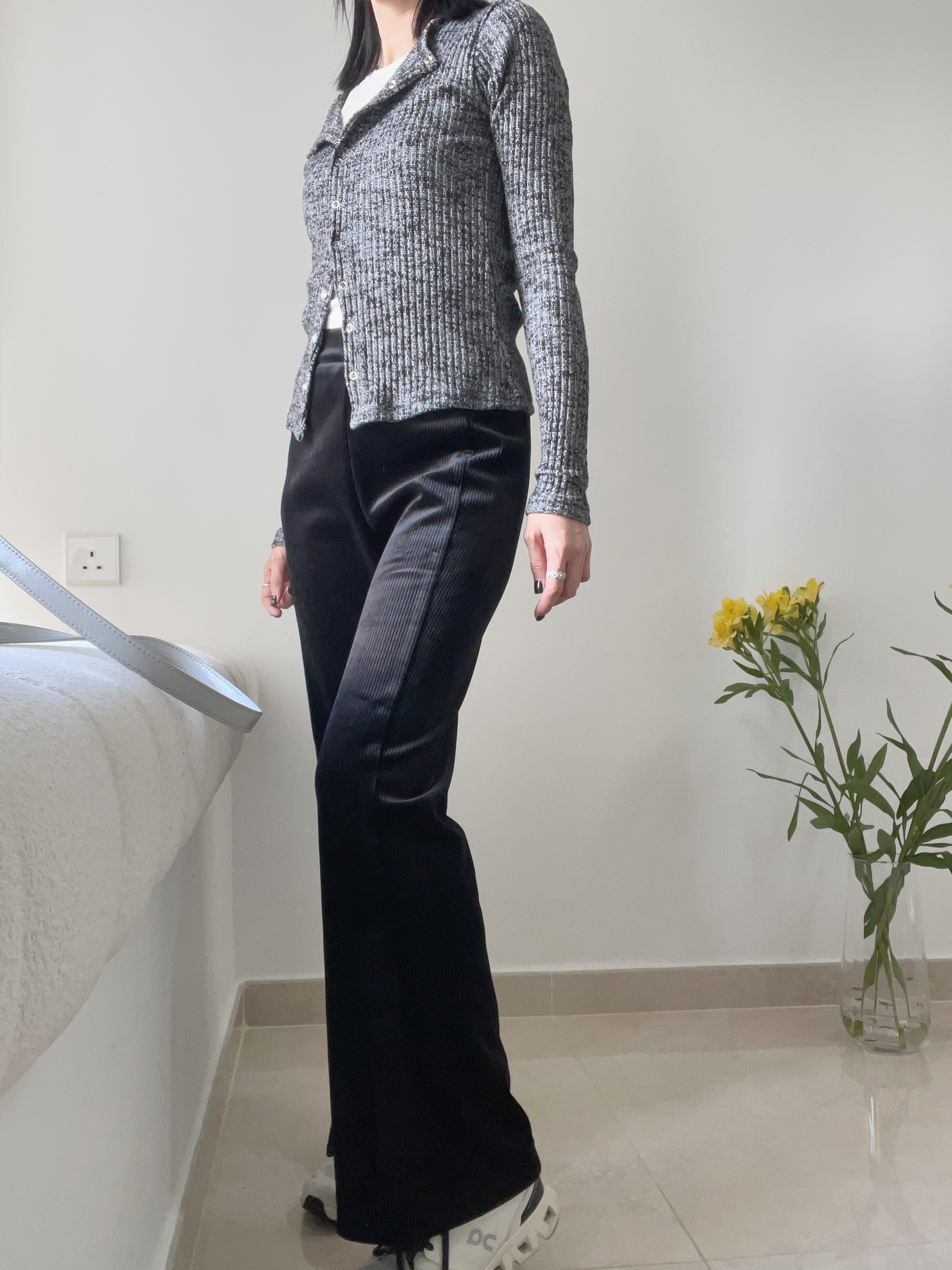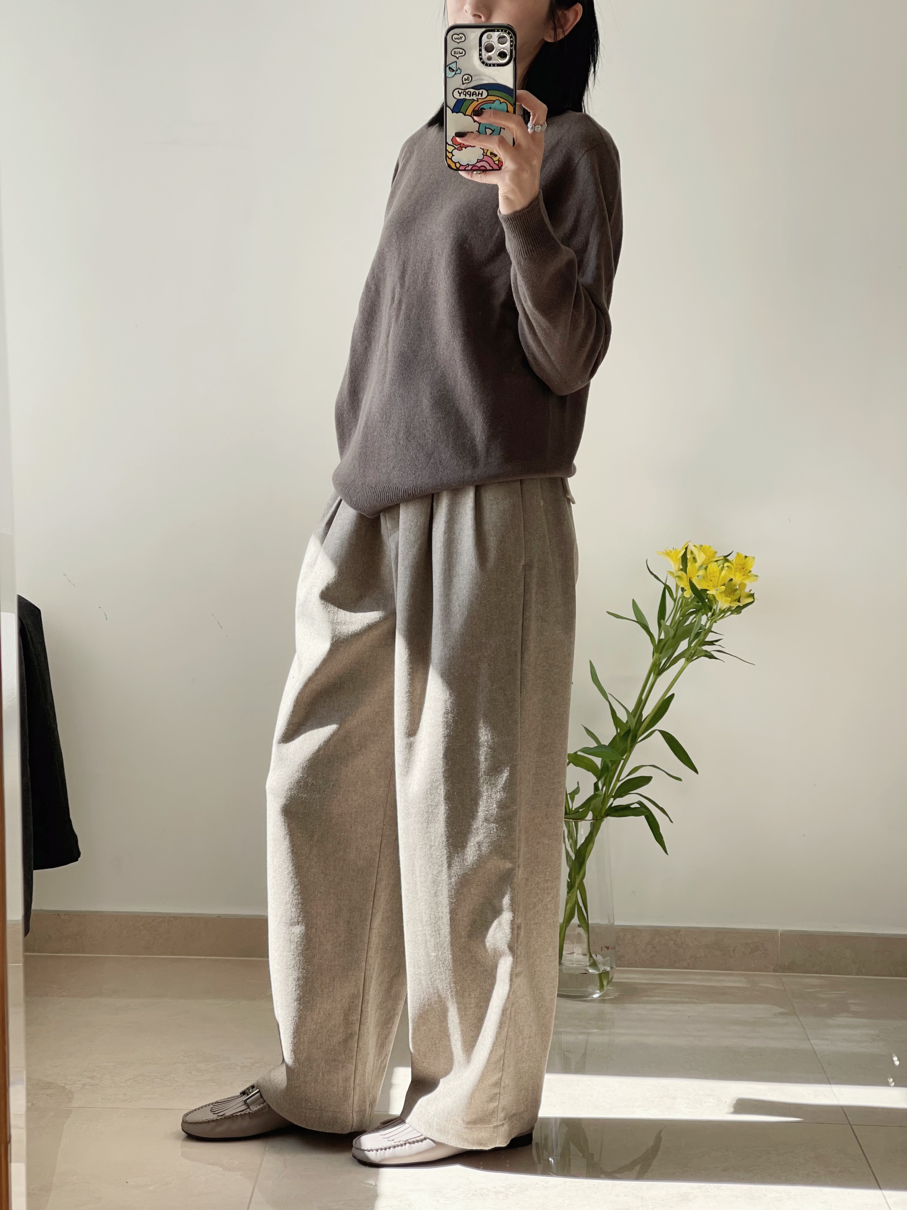 All Products Stylish wool wide pants Two tone polo knit top Grey Strechy velvet bootcut pants Button up blended knit top Warm brushed straight jeans (S/M/L; Long Short) Elegant strechy flower lace top Faux leather sherpa jacket Cream Ivory Victoria lace blouse Light Grey