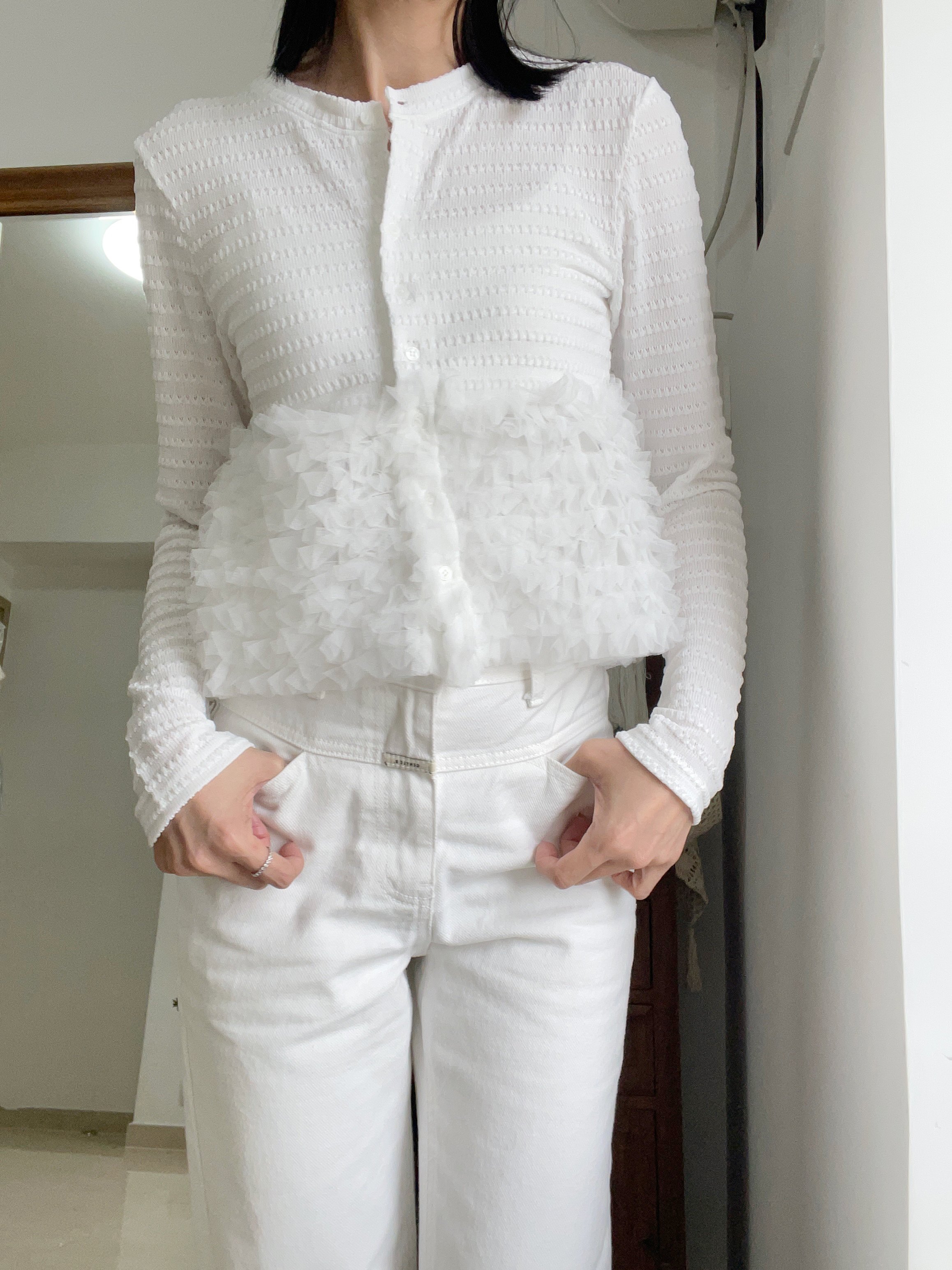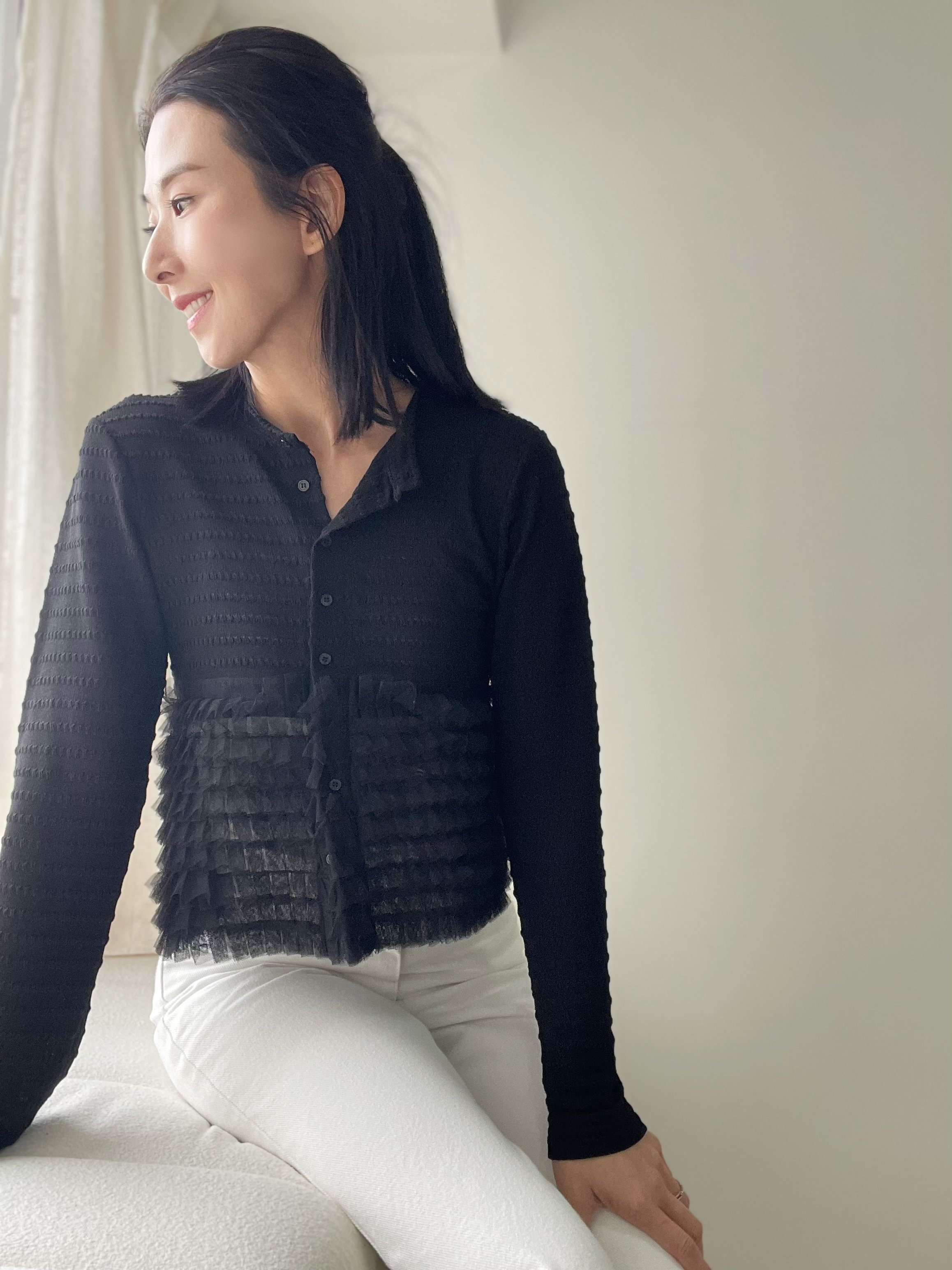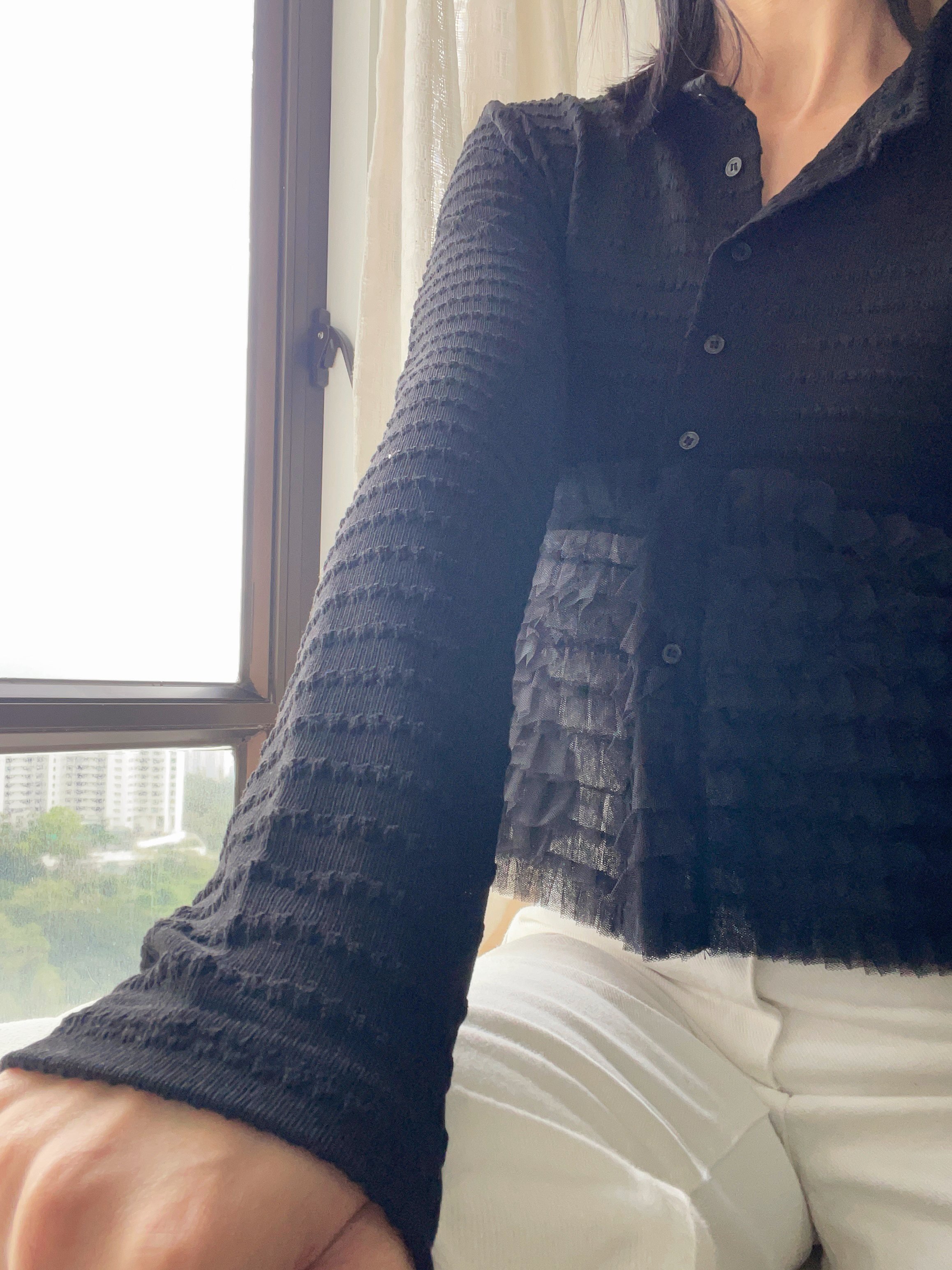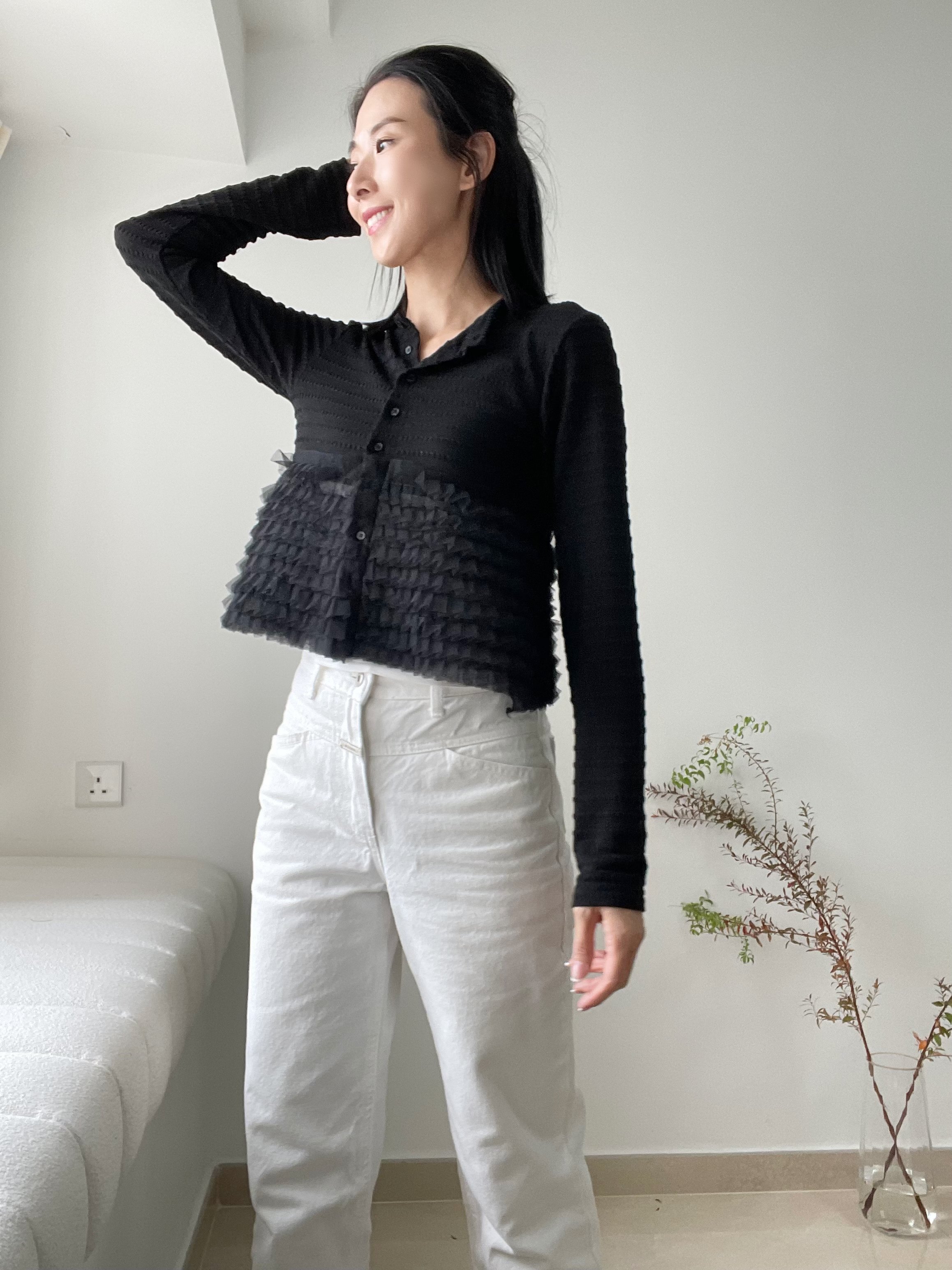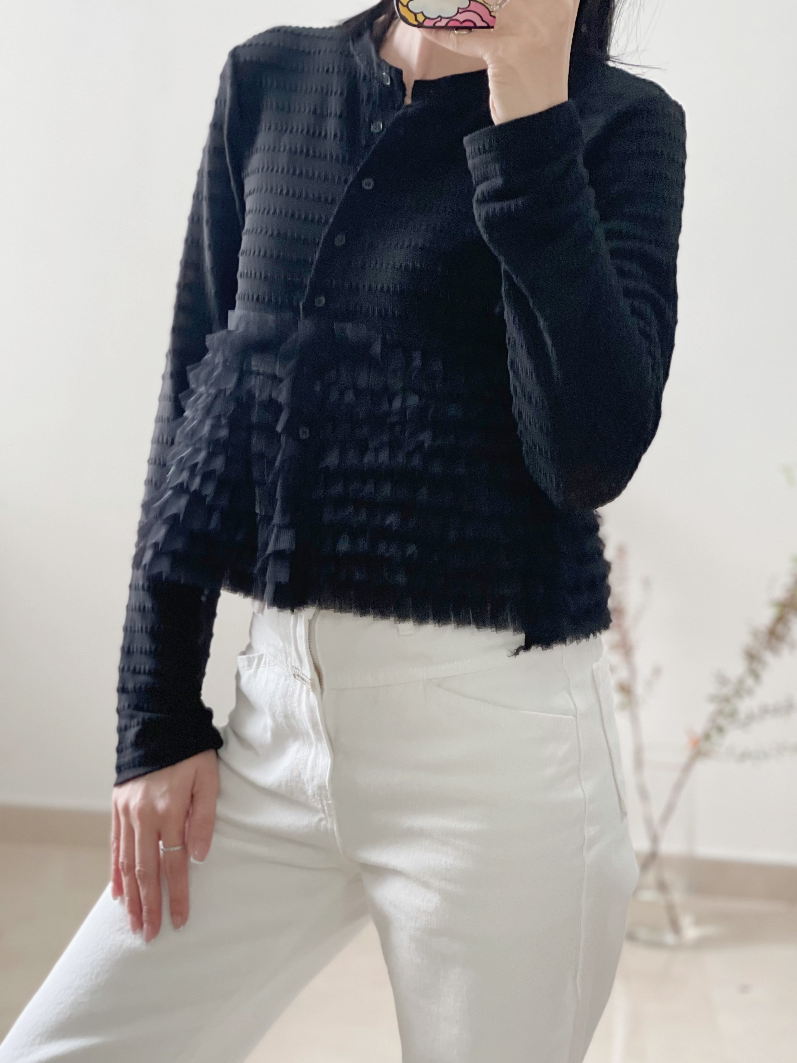 Elegant ruffle knit blouse cardi