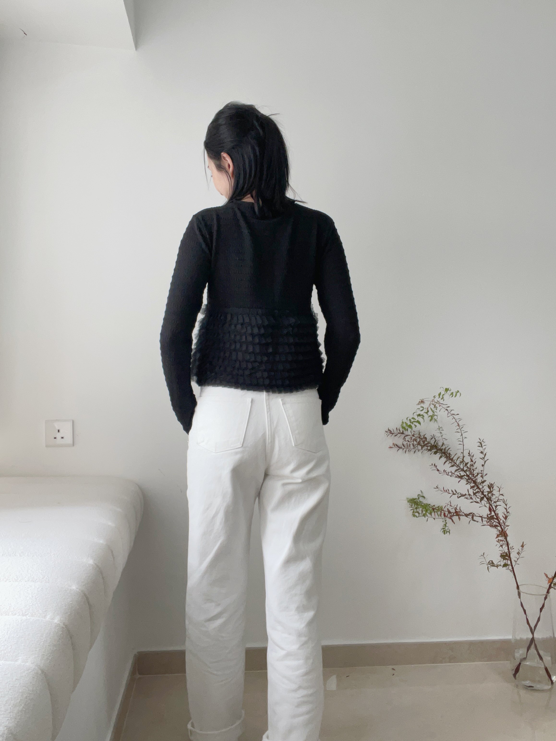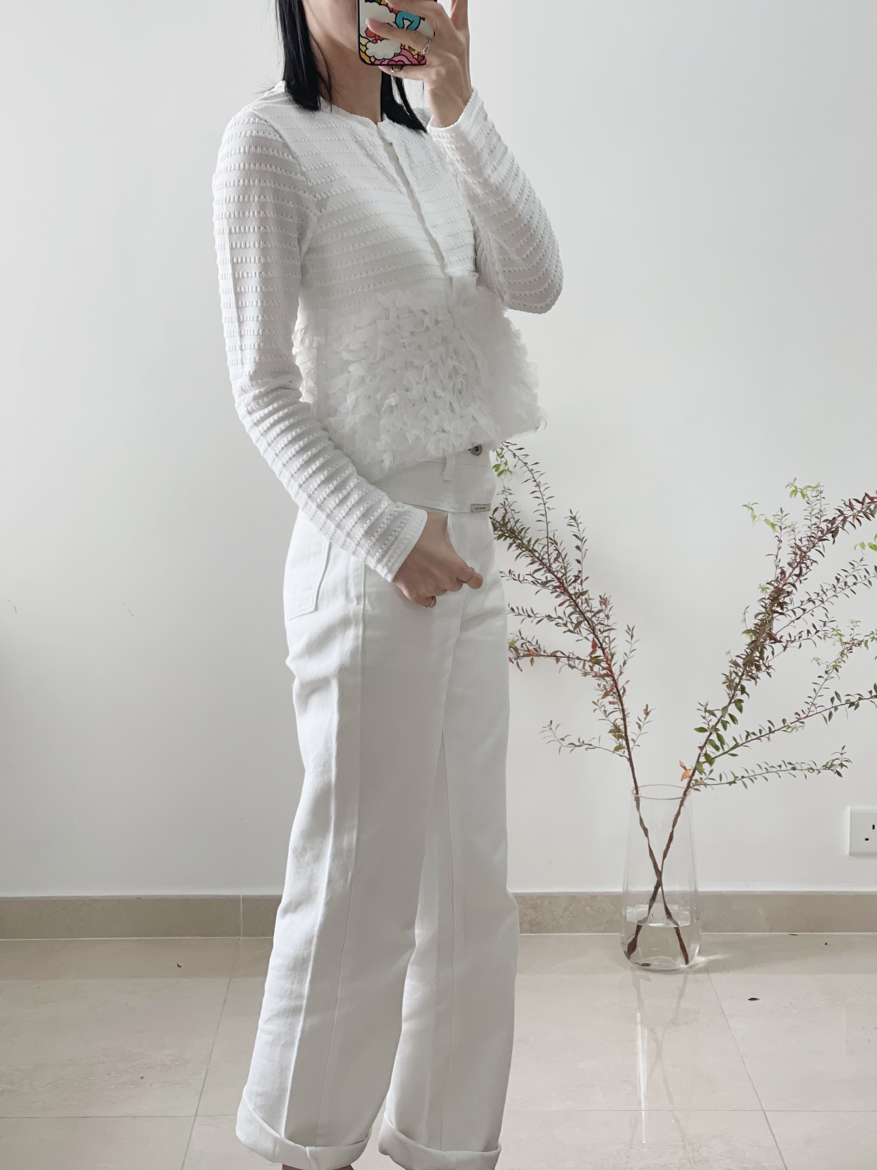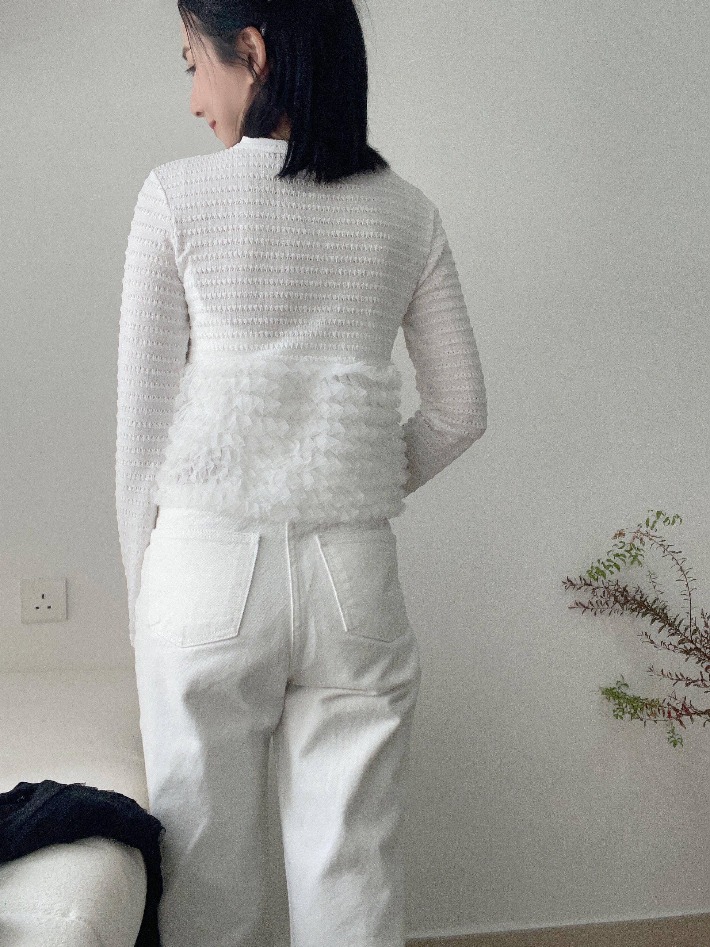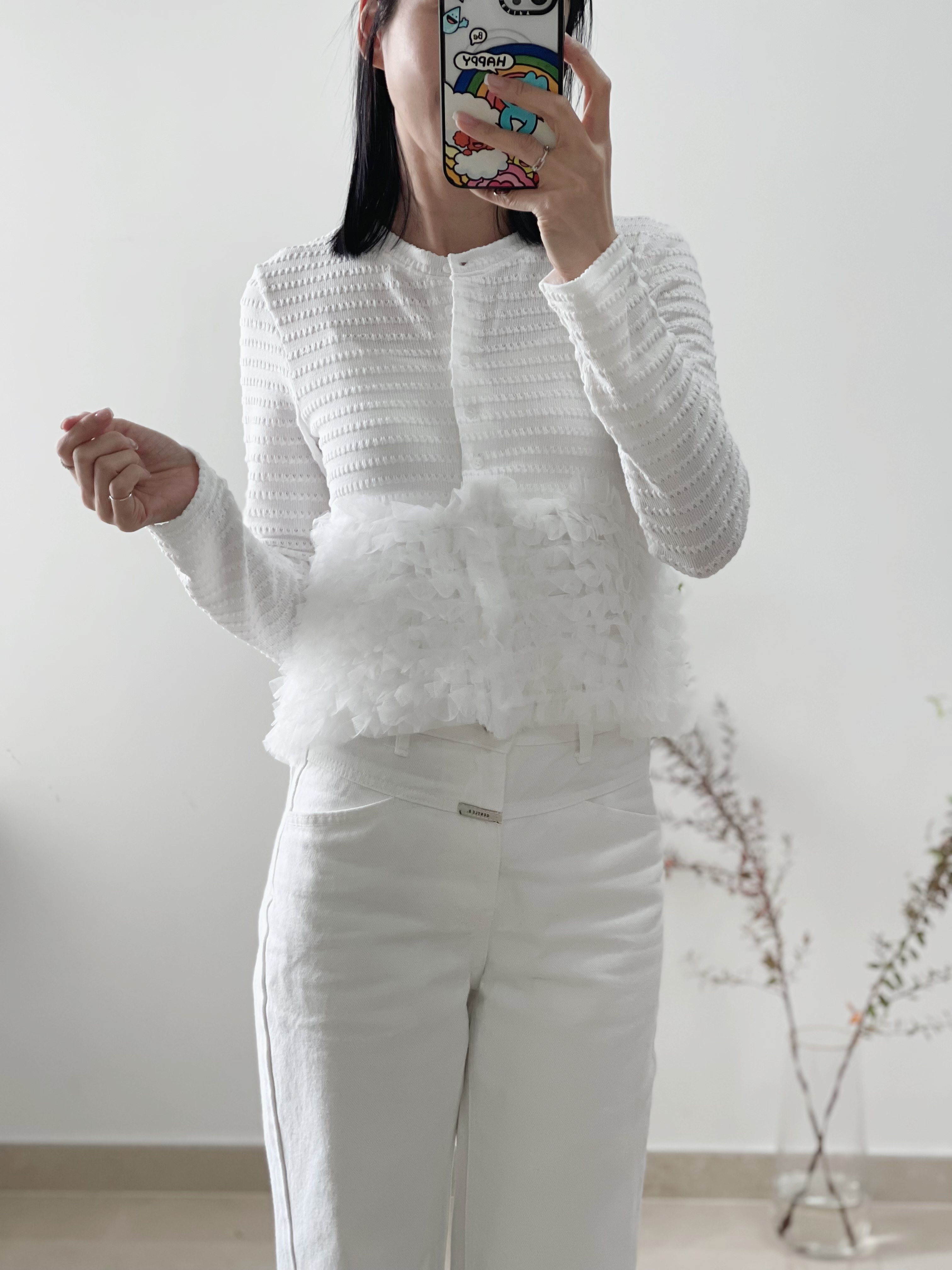 Elegant ruffle knit blouse cardi