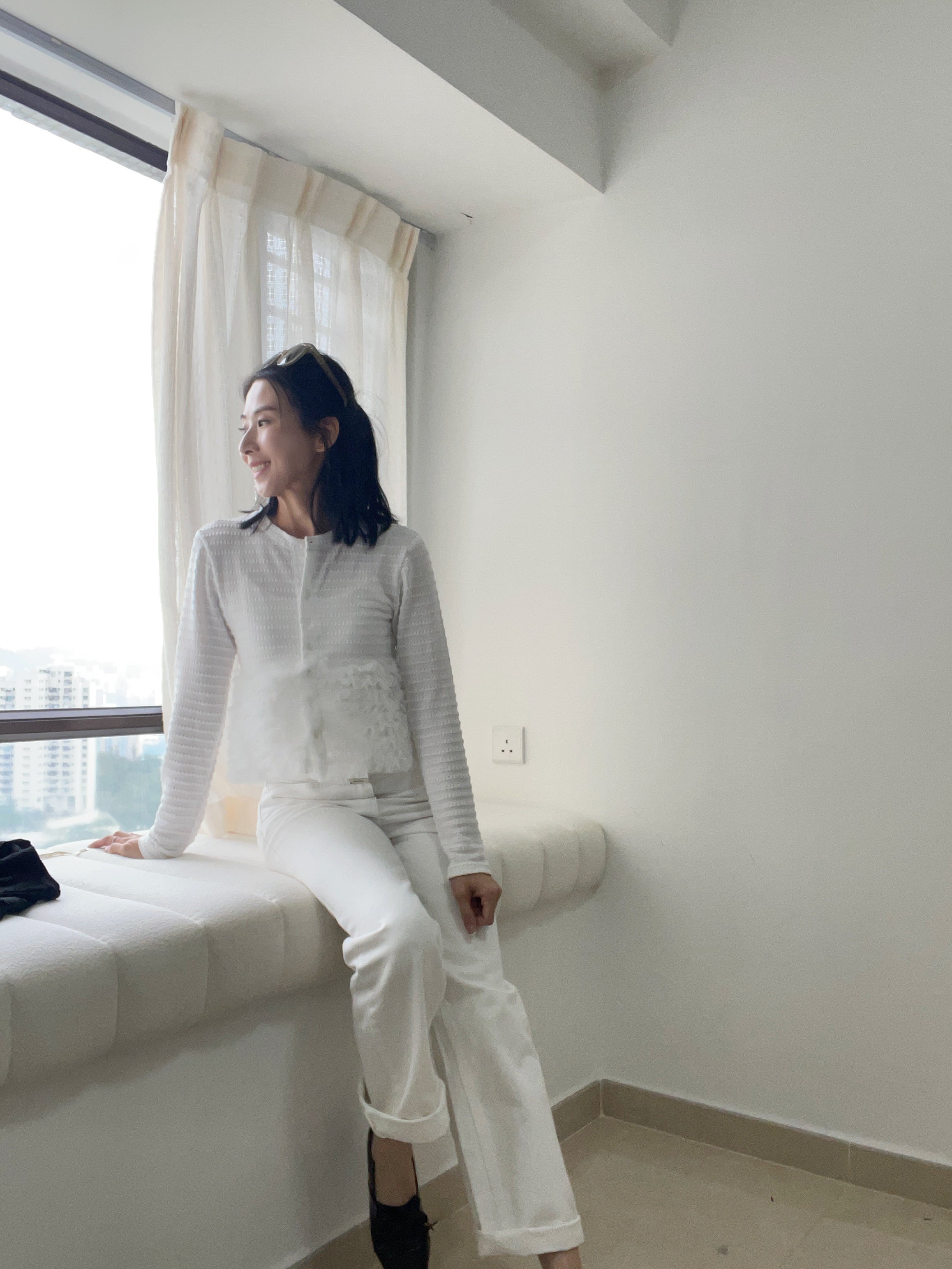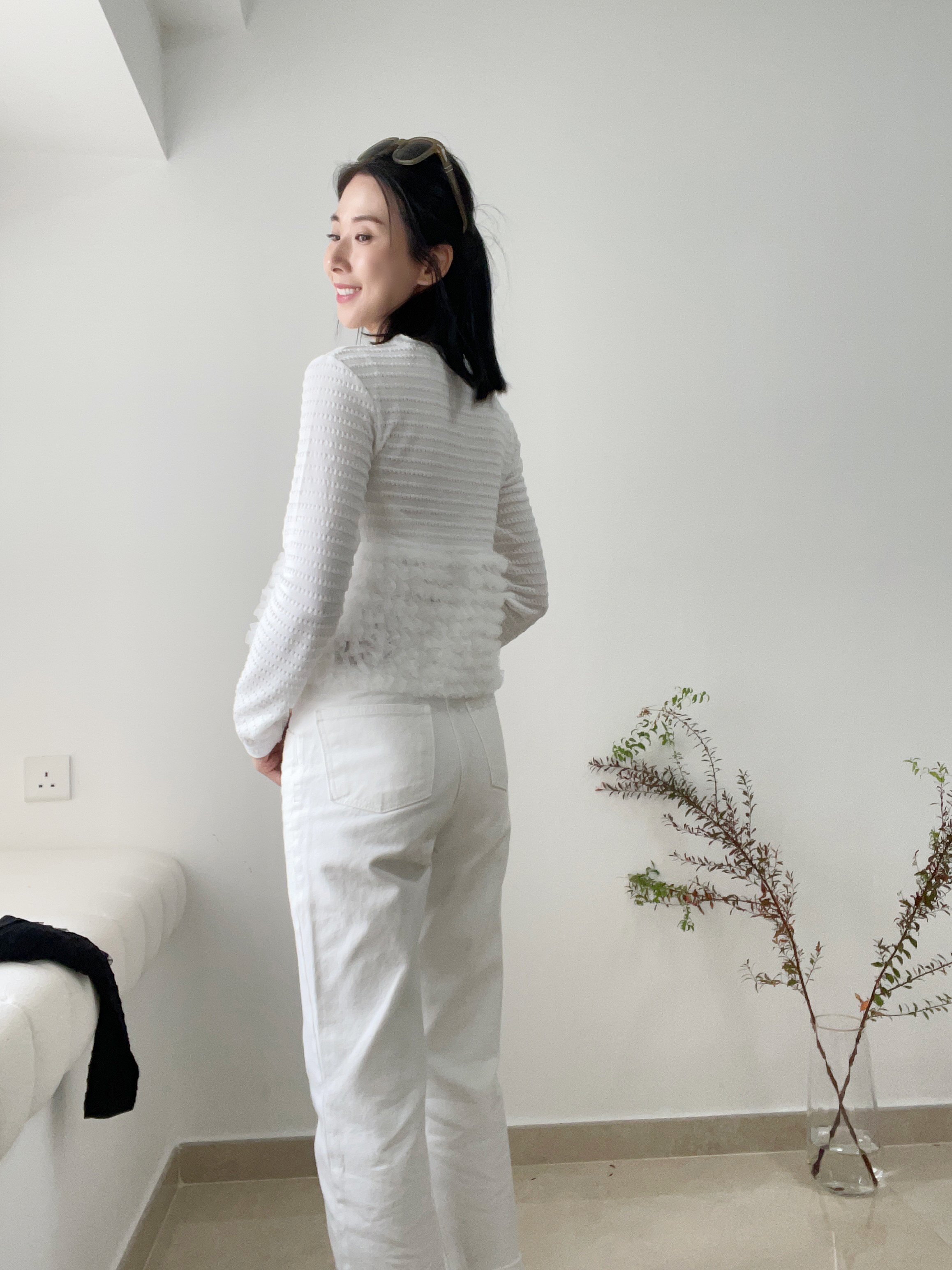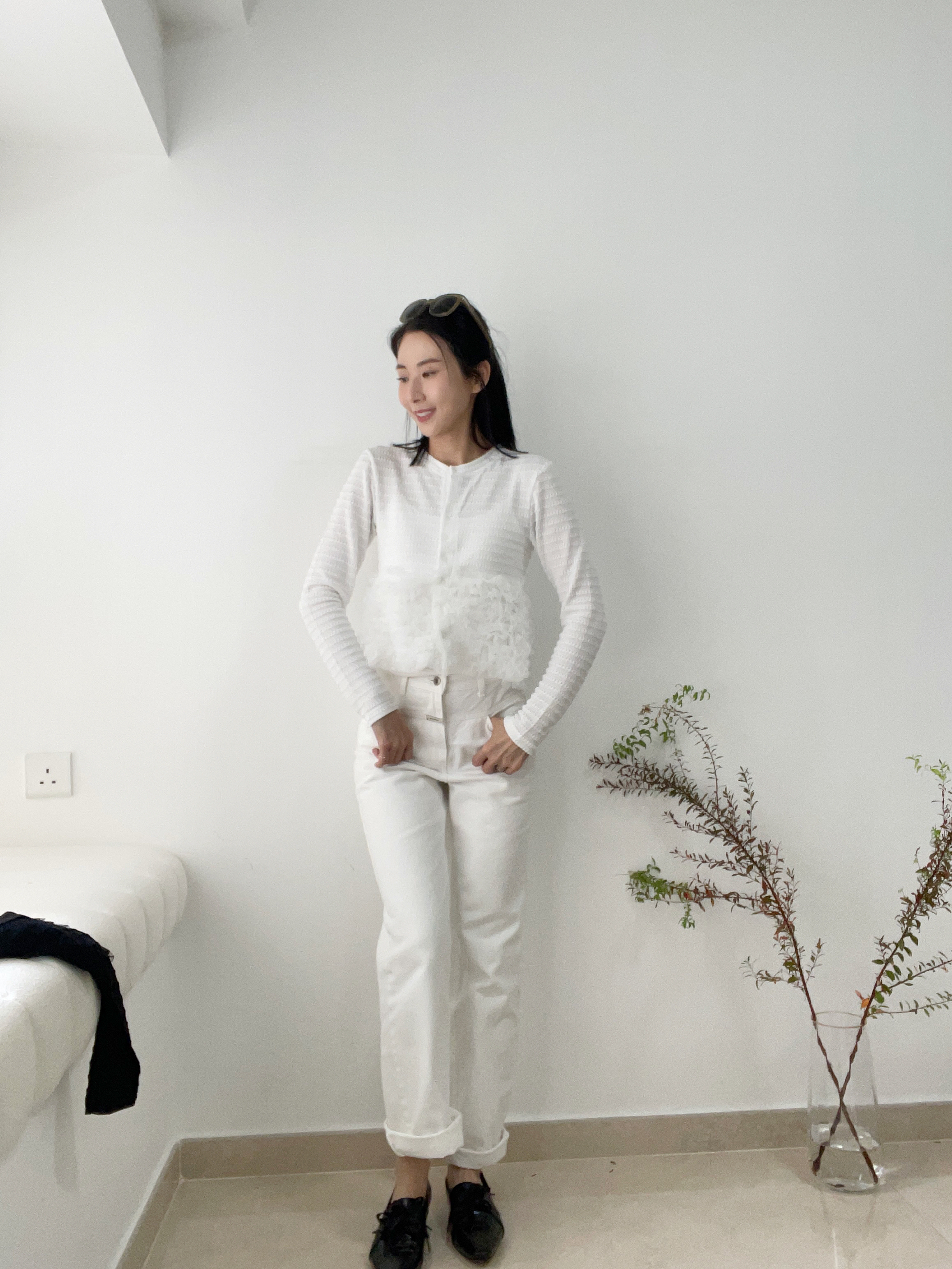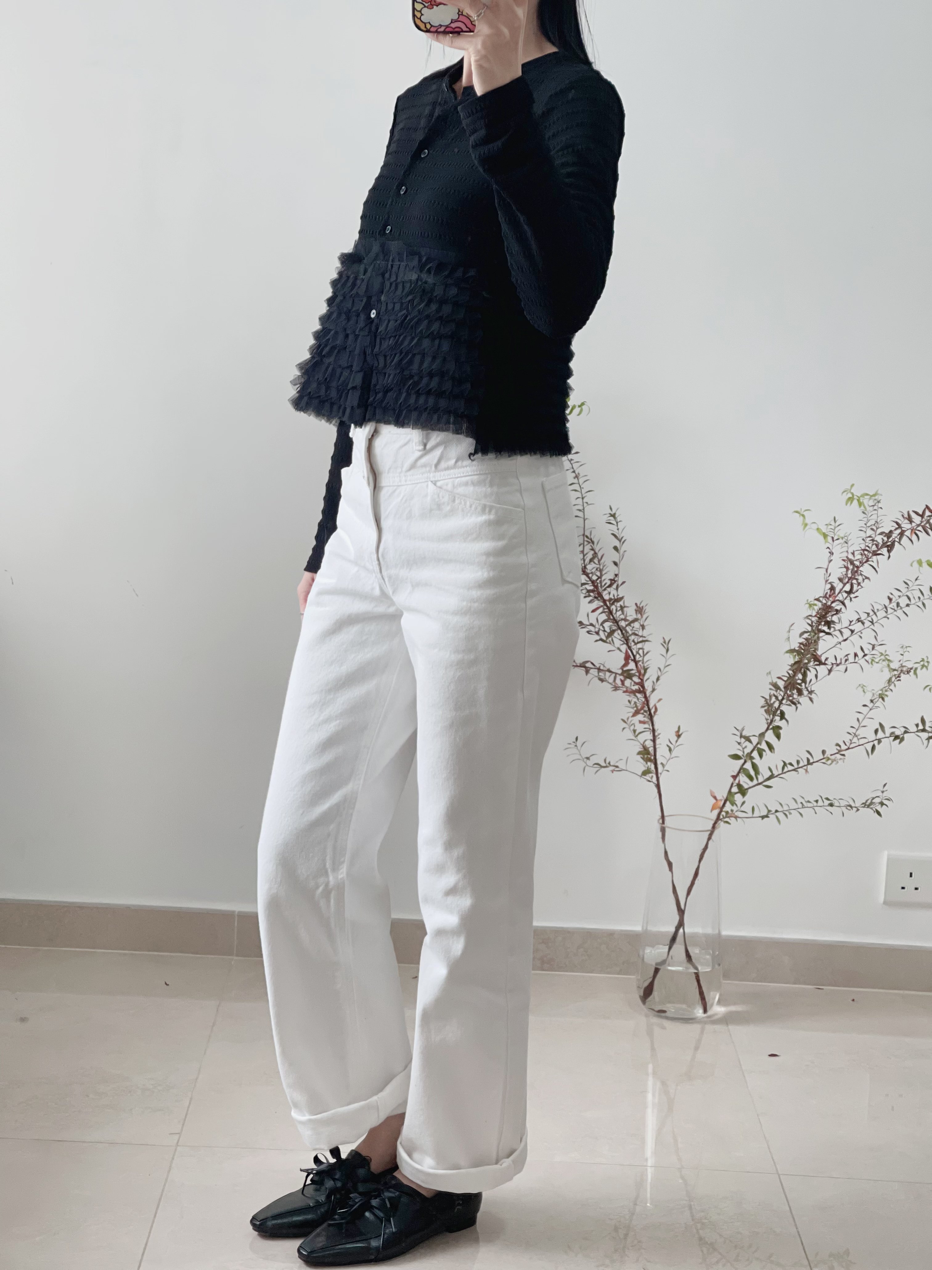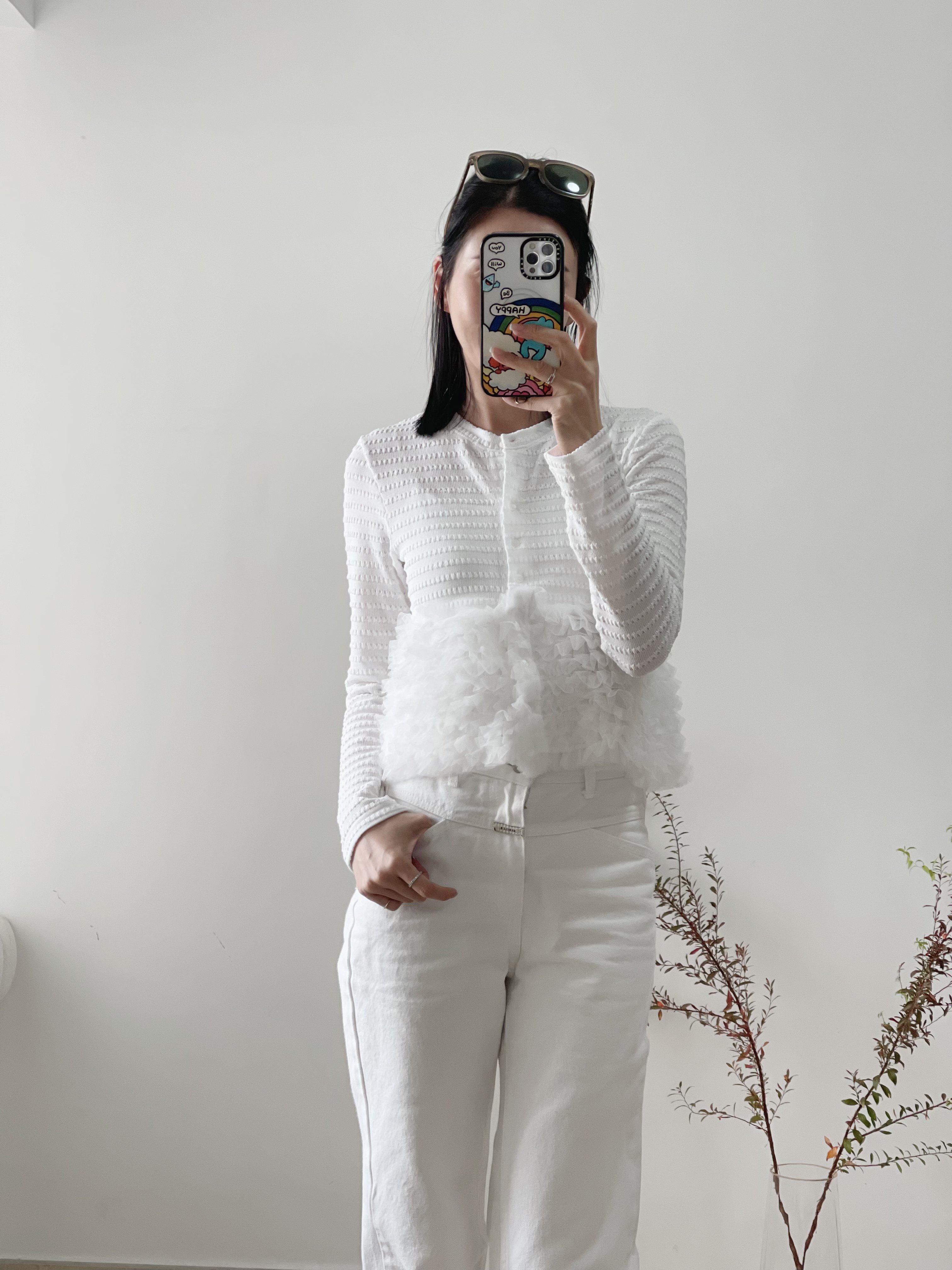Elegant ruffle knit blouse cardi
