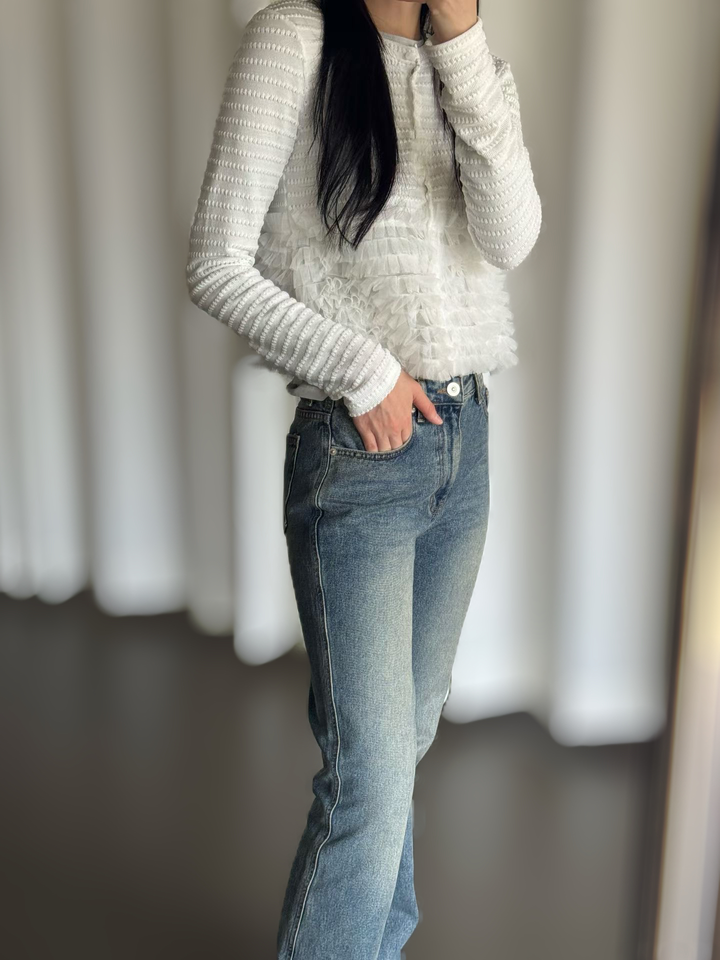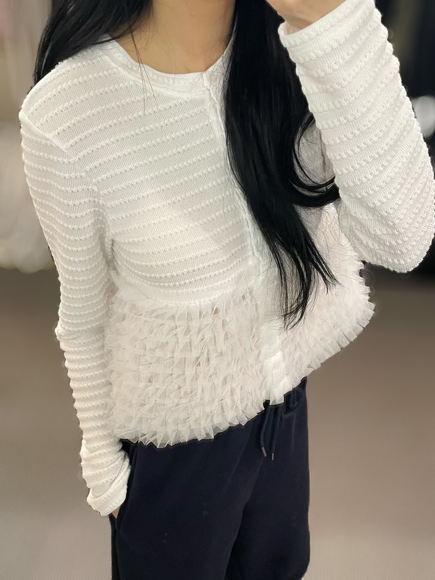 Elegant ruffle knit cardi