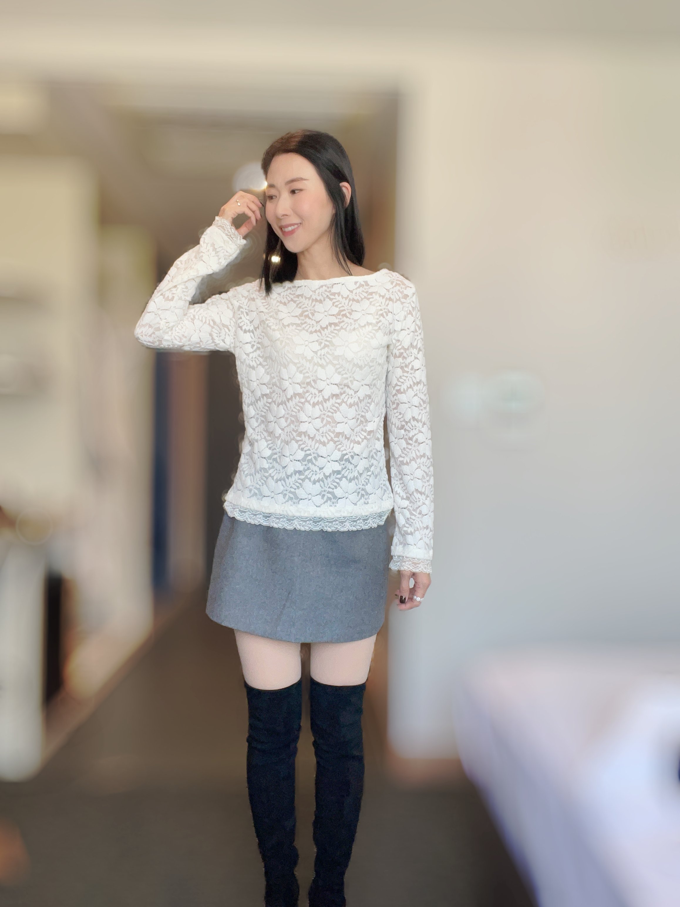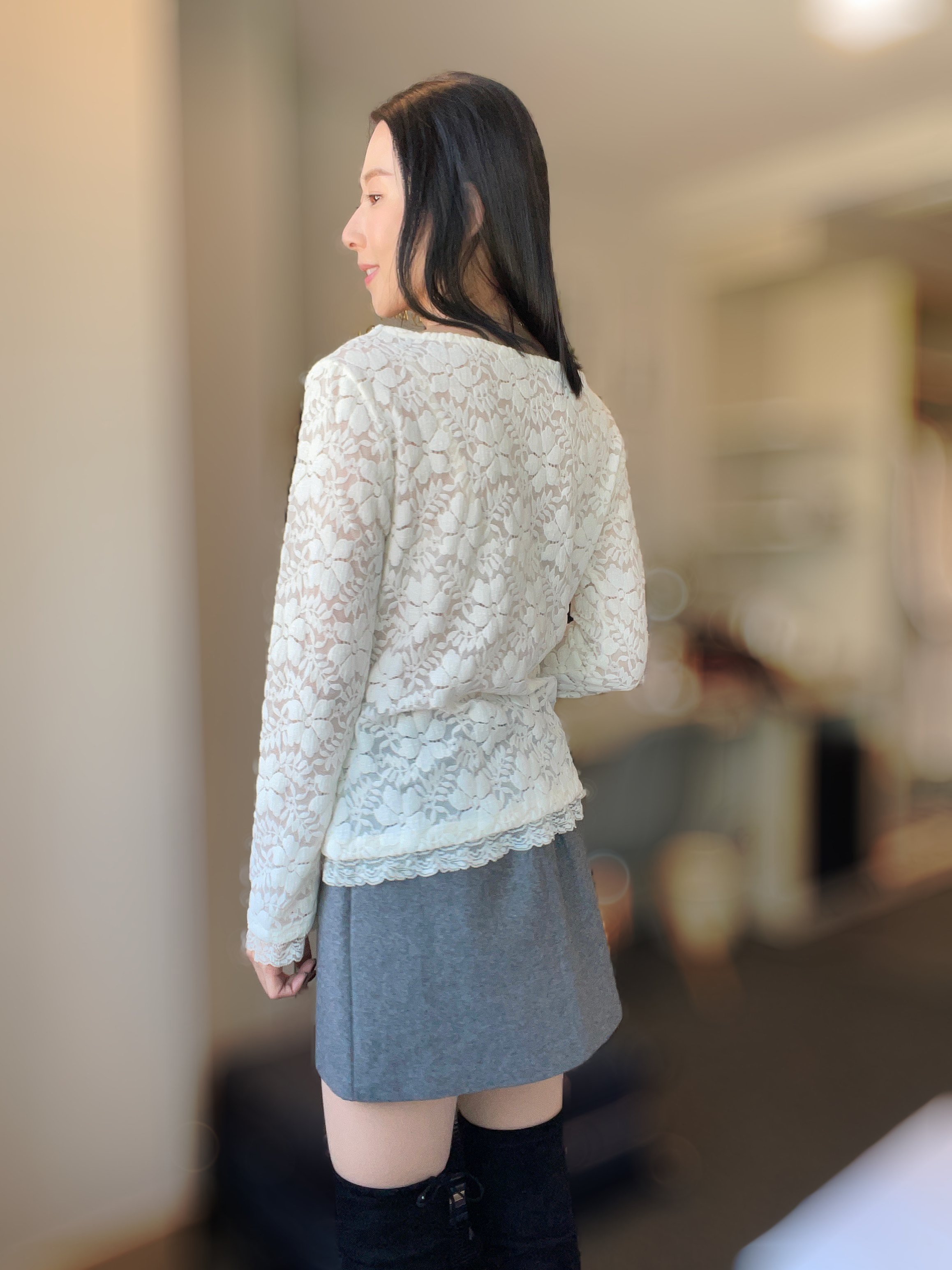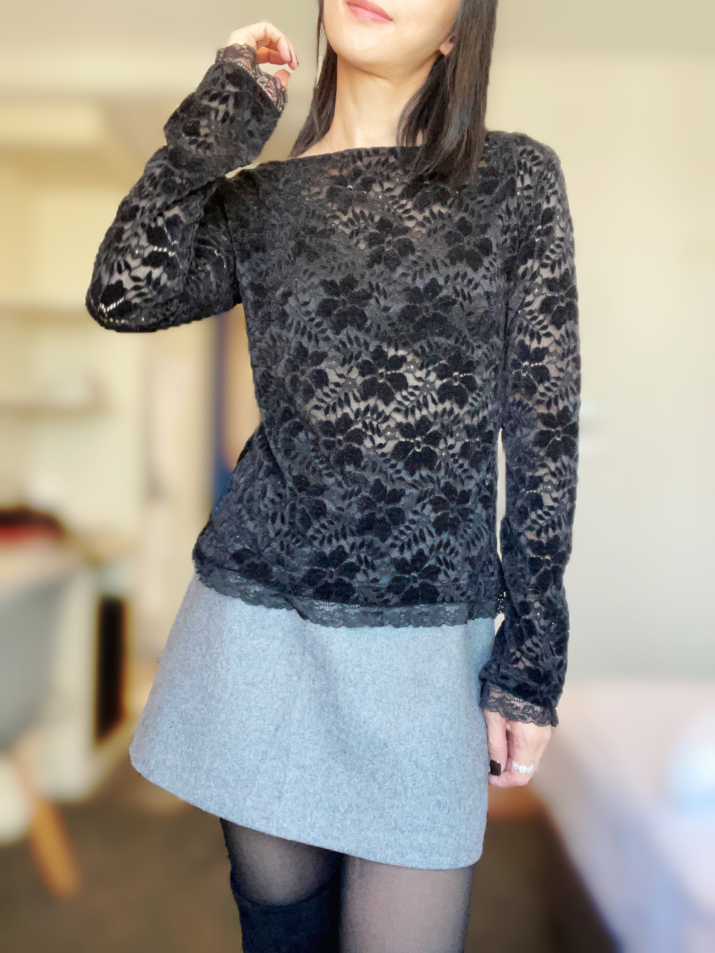 Elegant strechy flower lace top