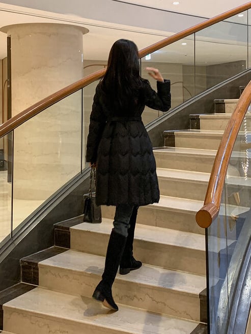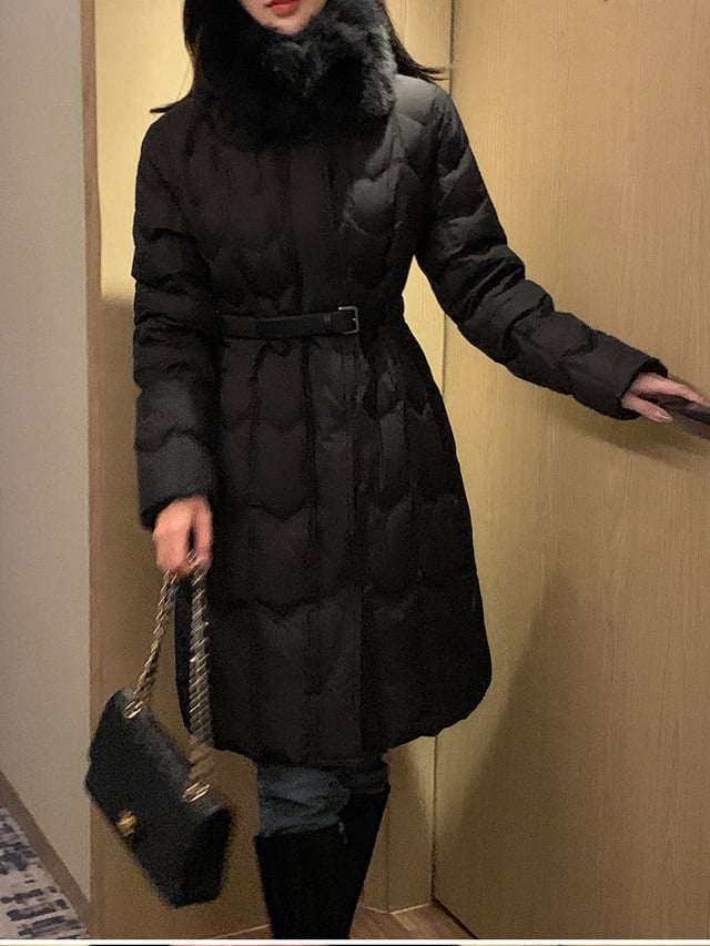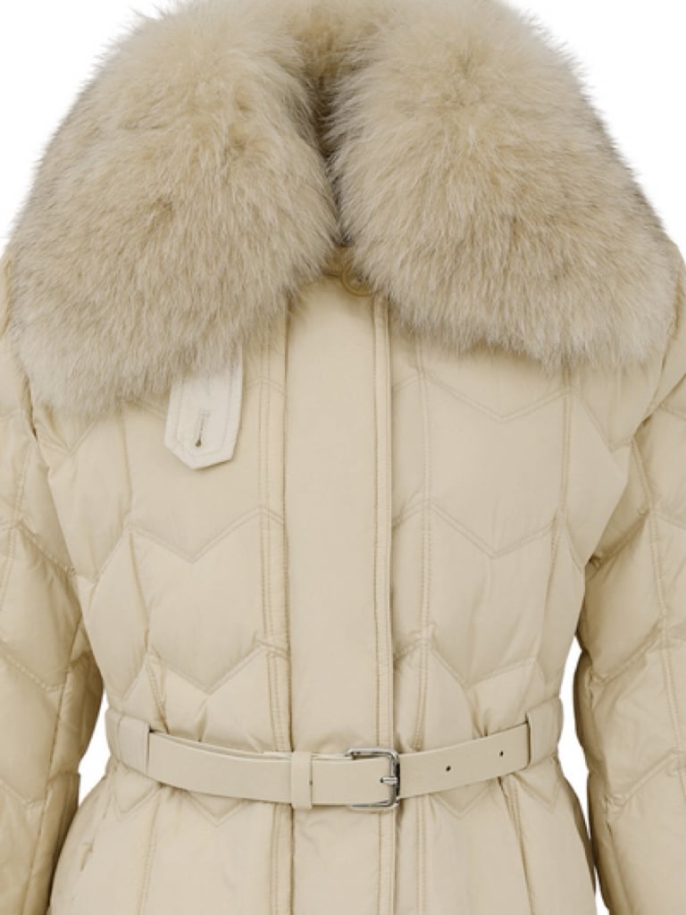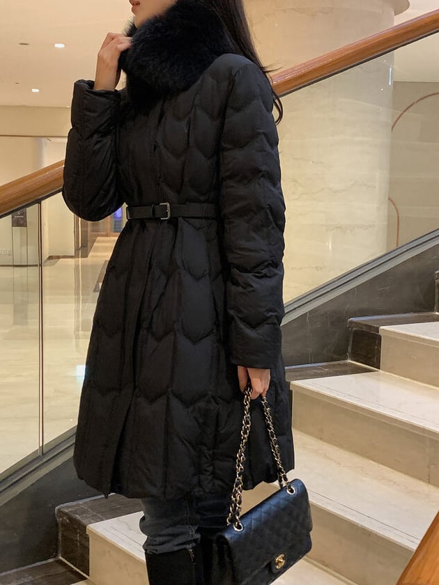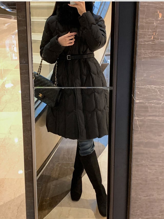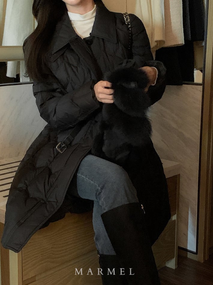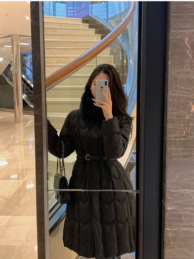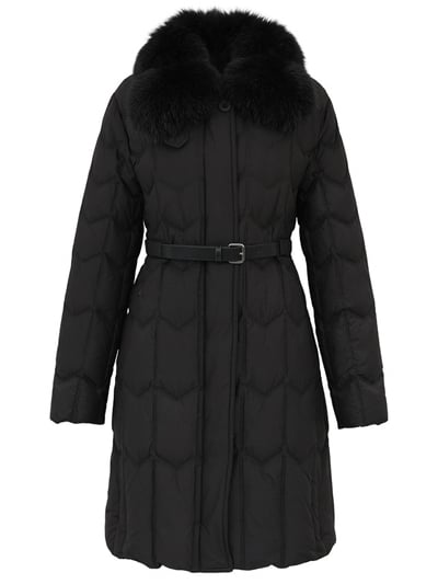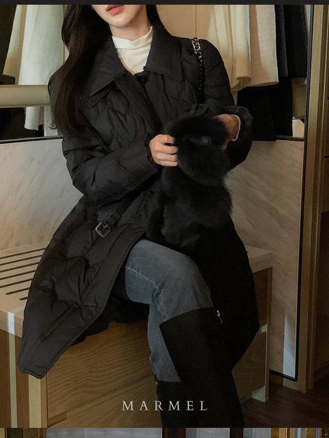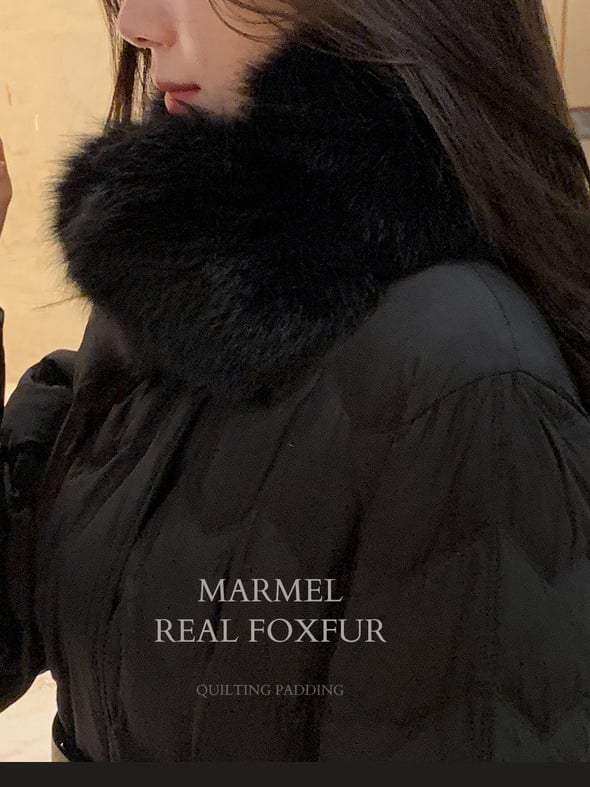 MARMEL Elegant Belt Black Fox Fur Down Jacket