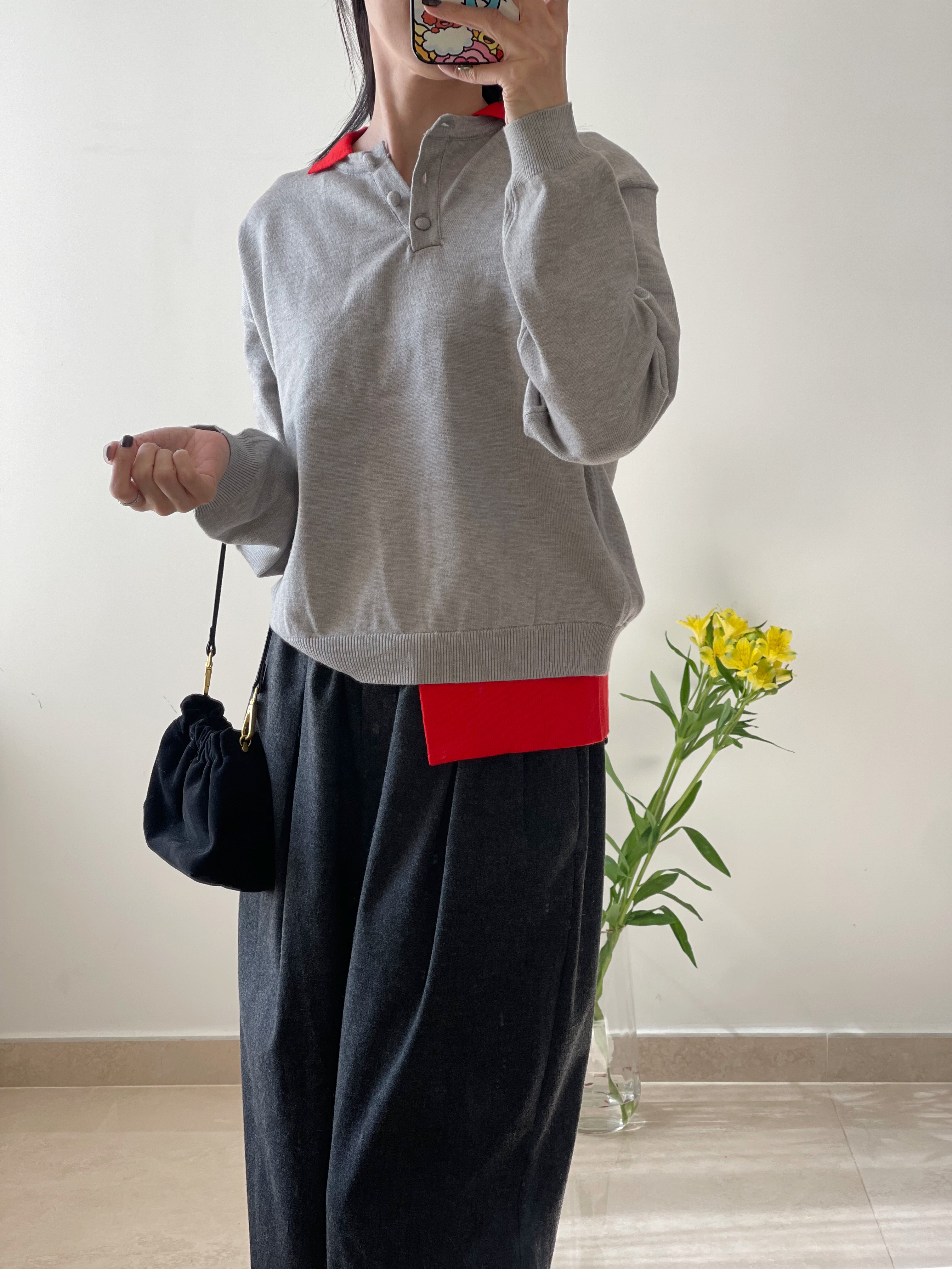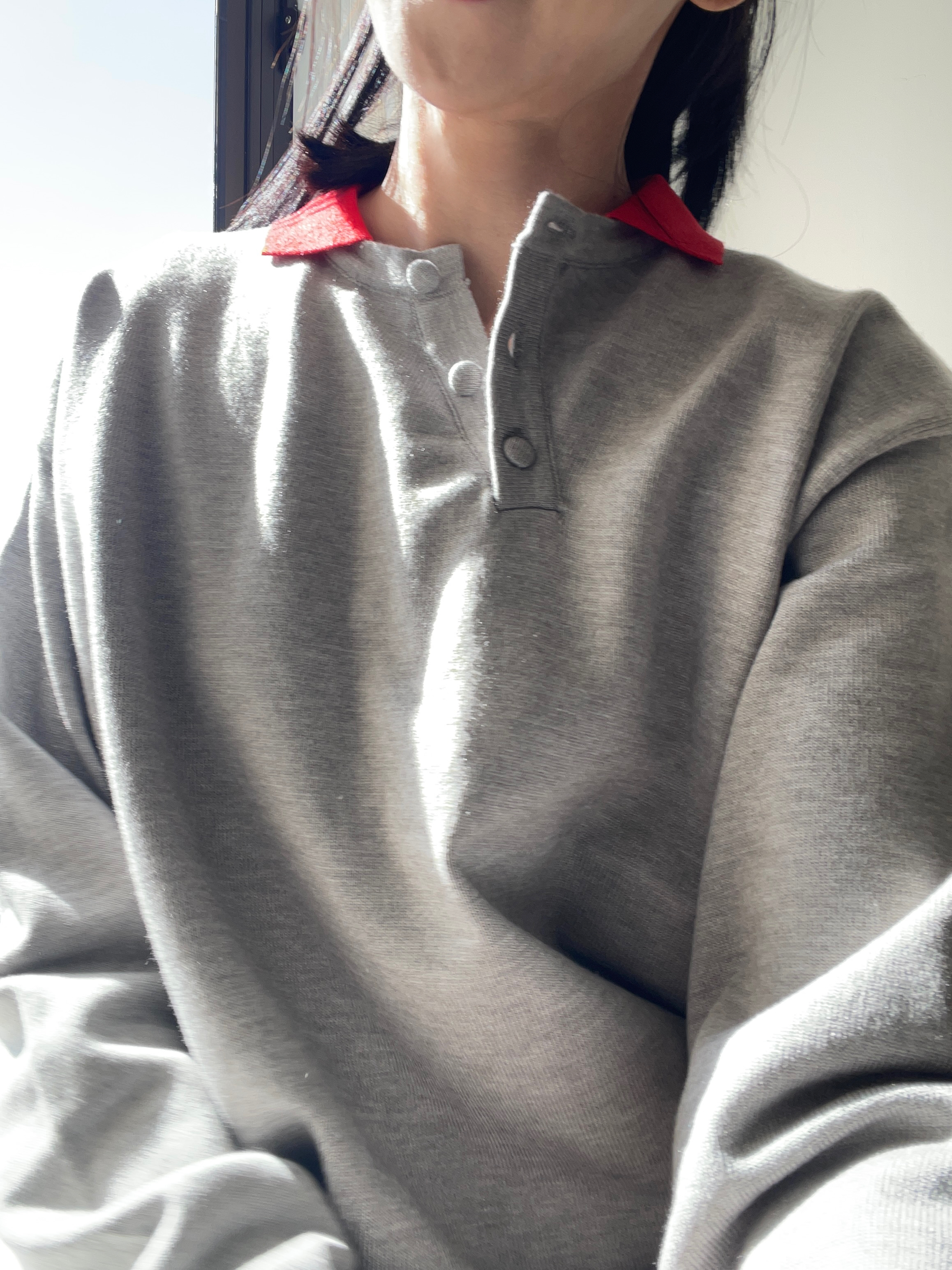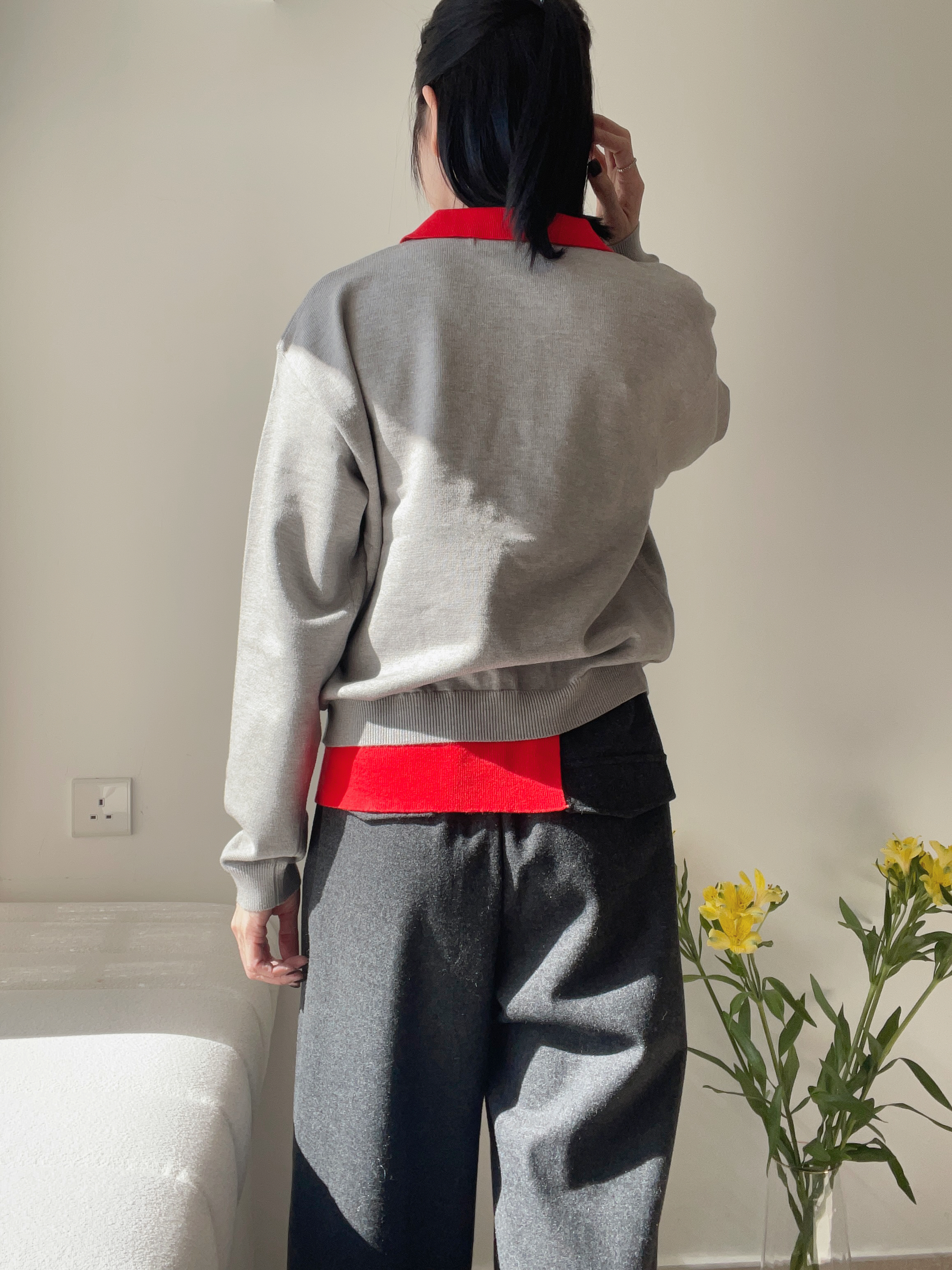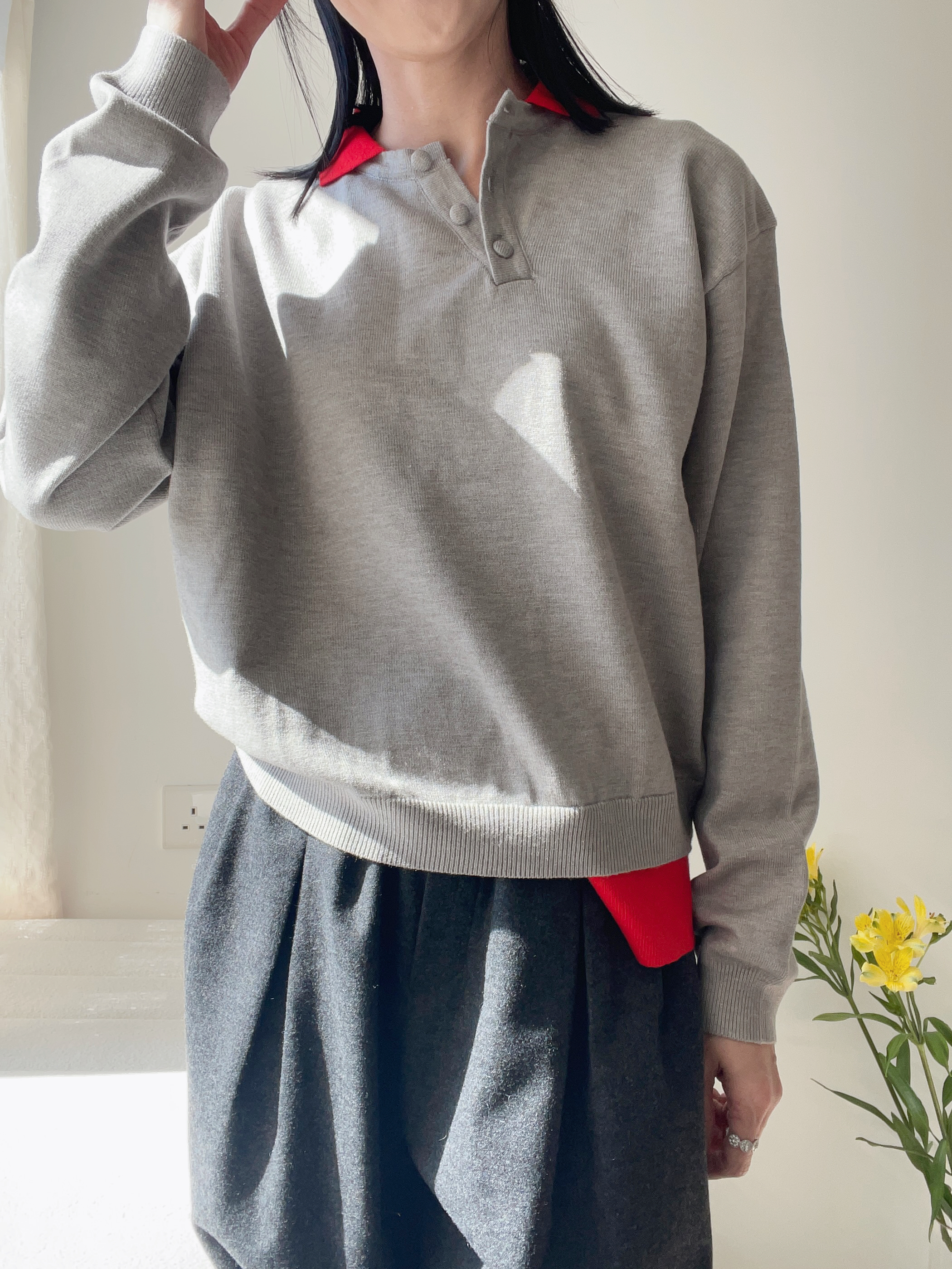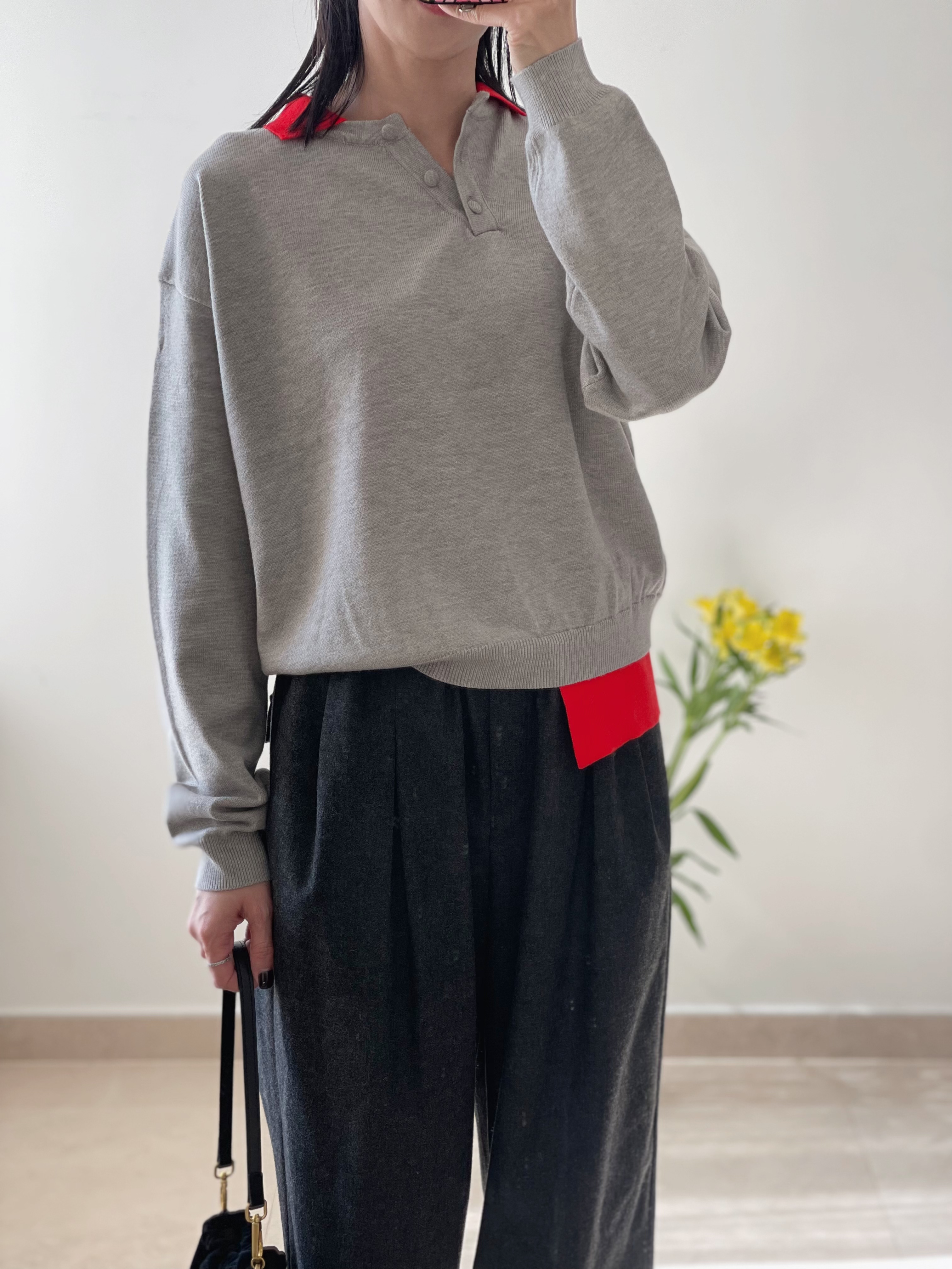 Two tone polo knit top Grey