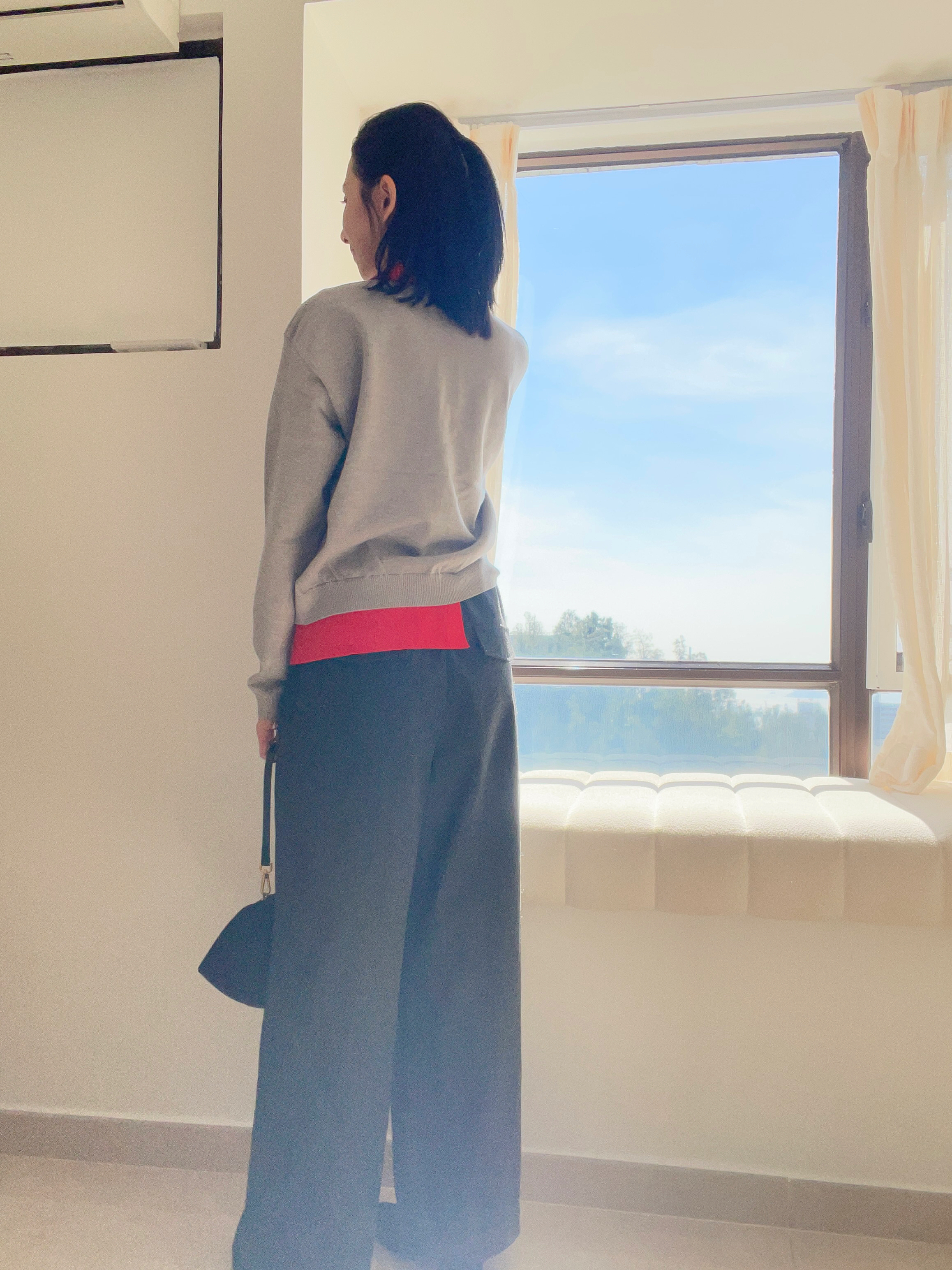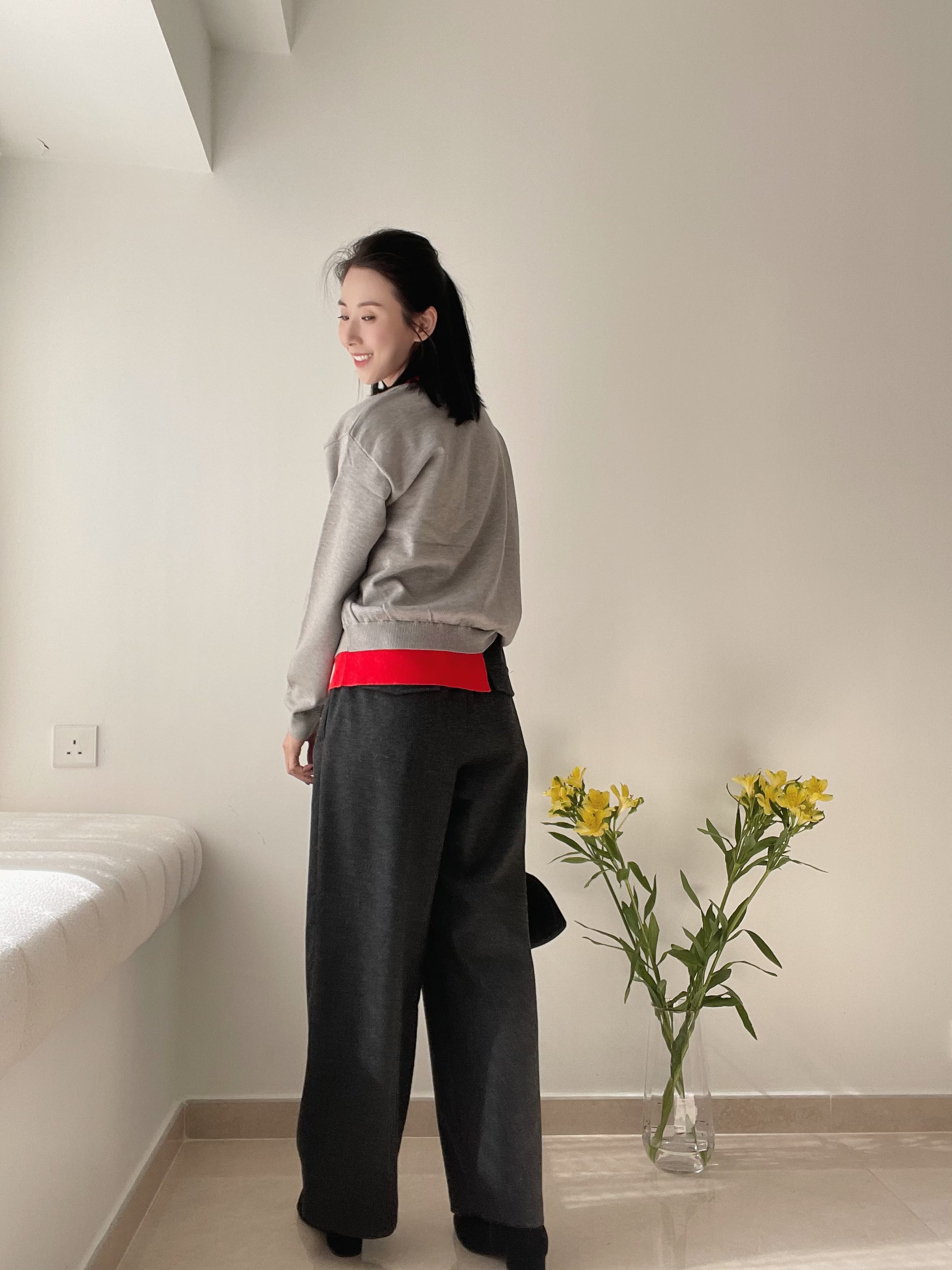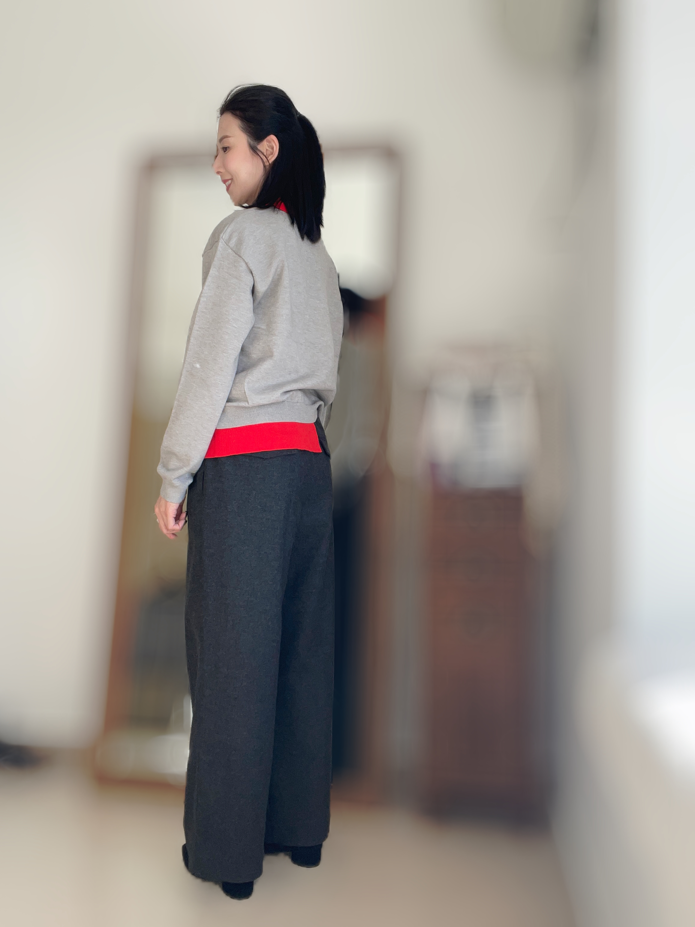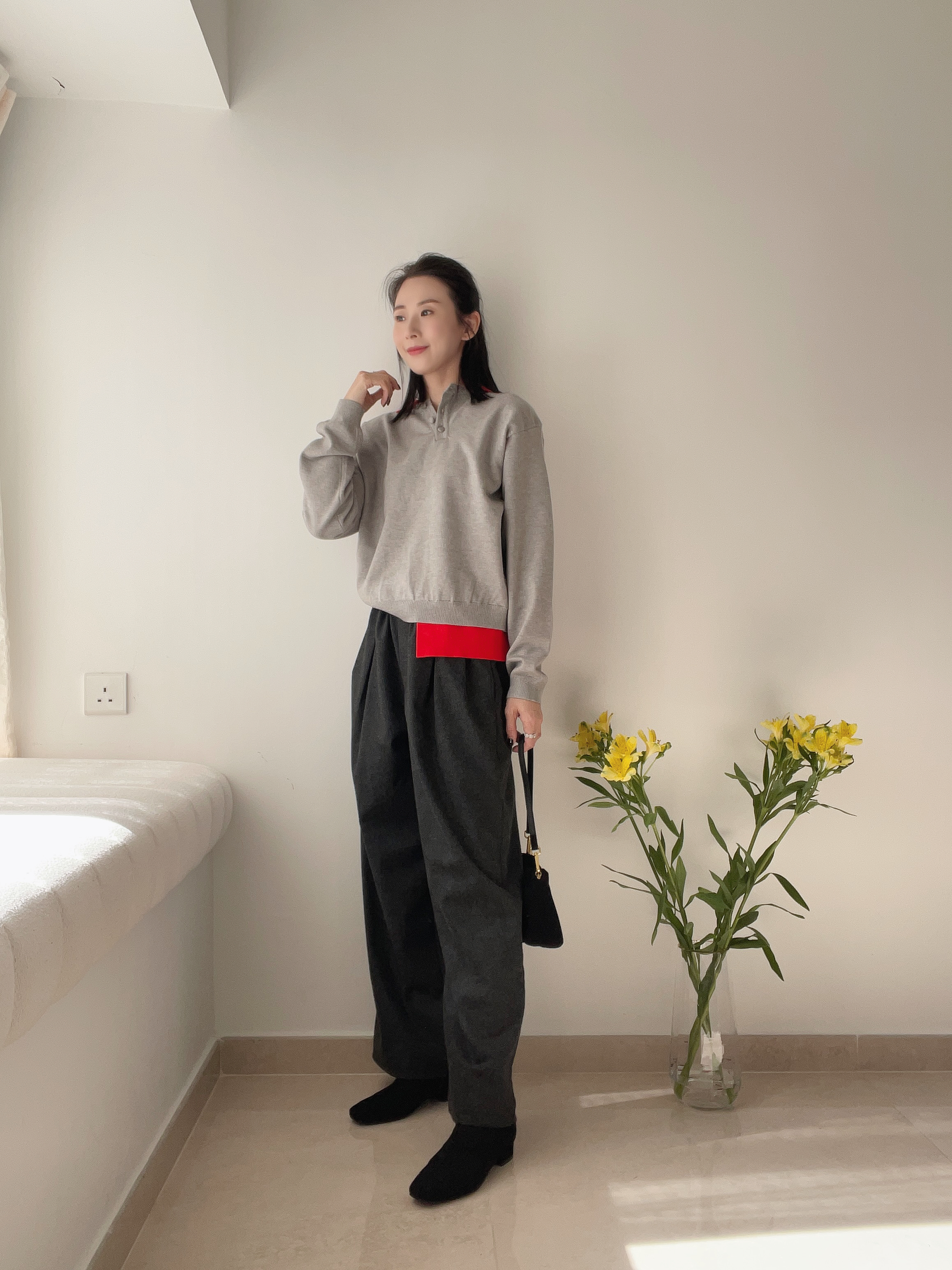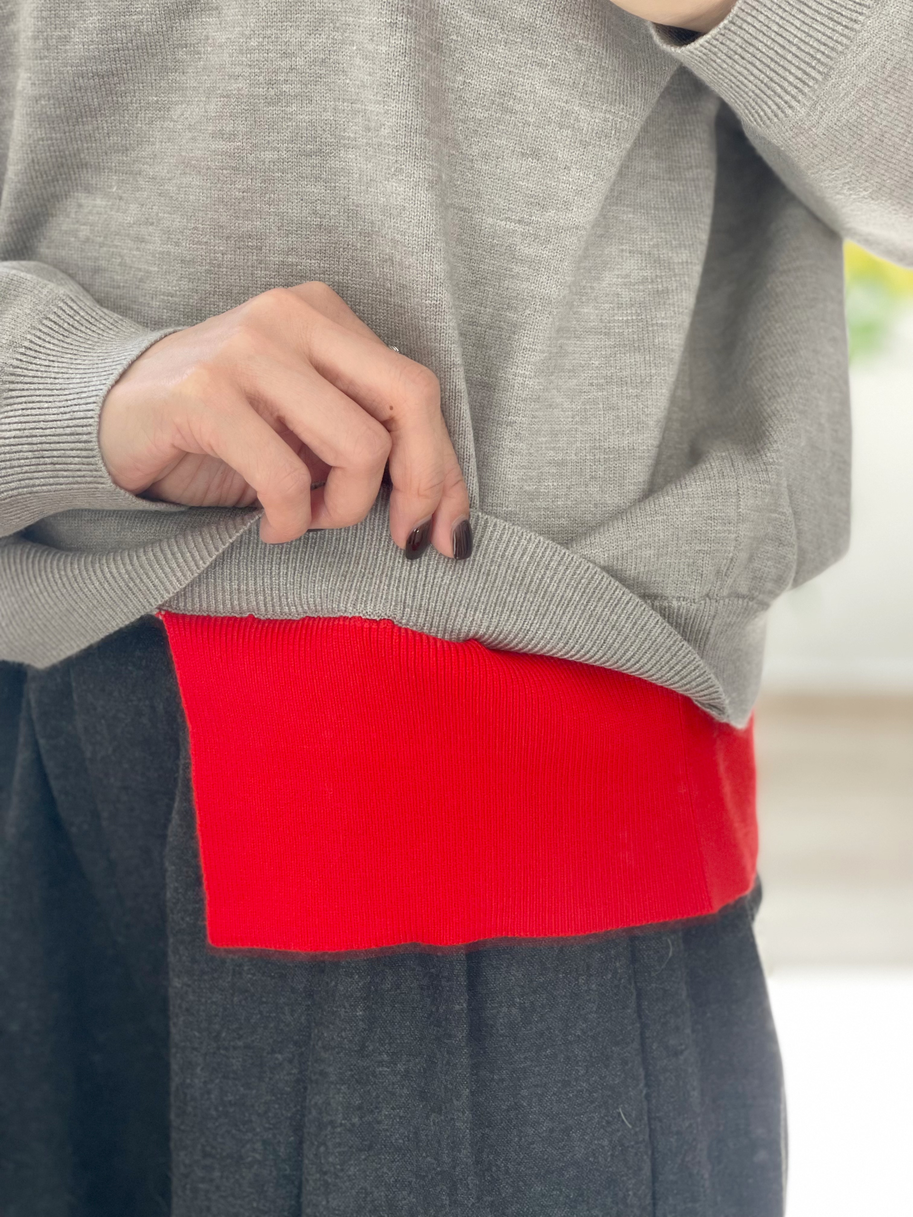 Two tone polo knit top Grey