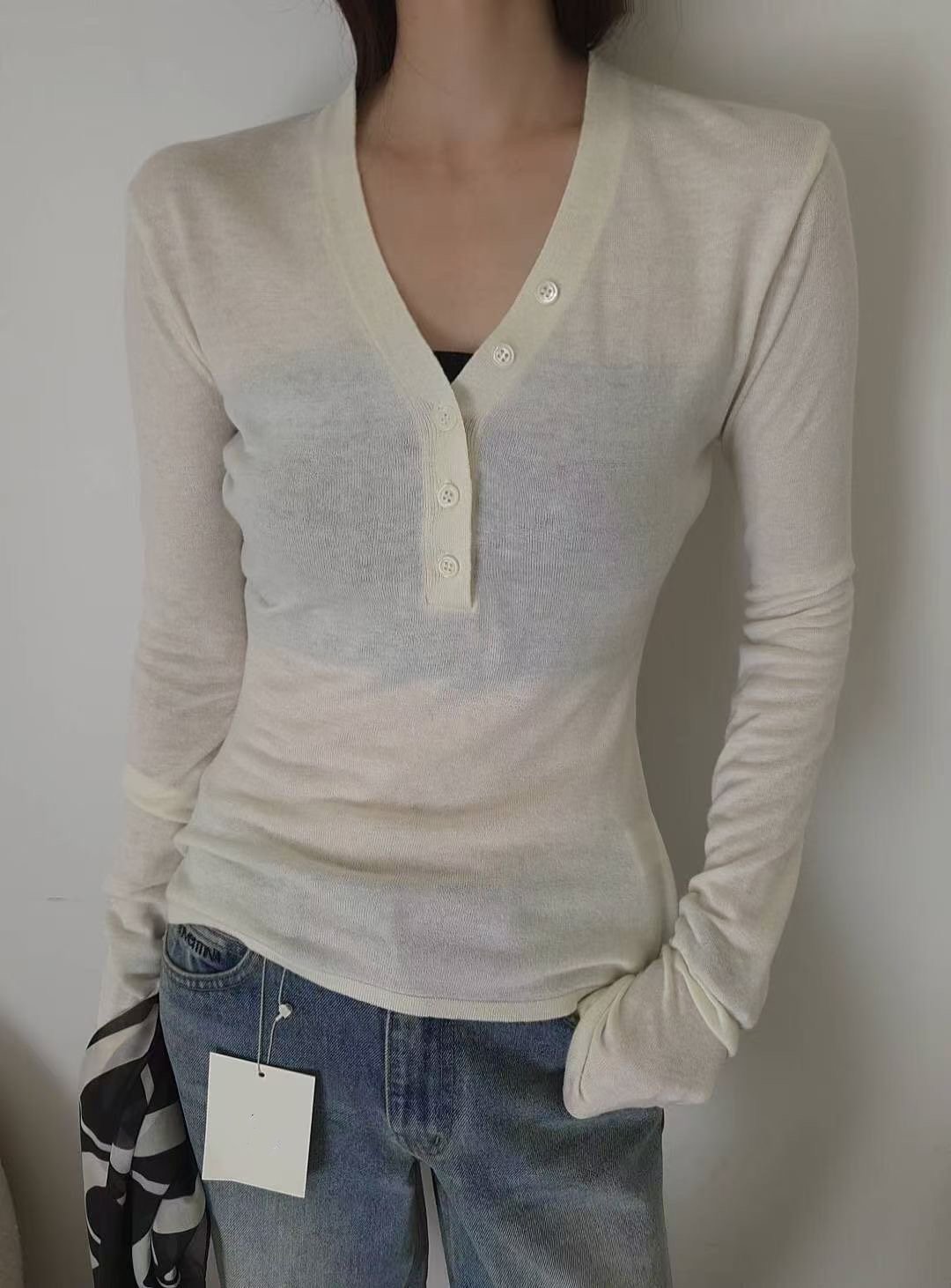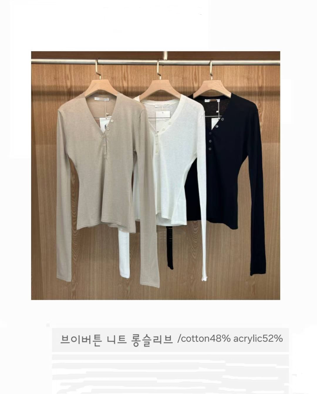 獨立女性輕熟知性美 品牌最近進行革新 將品牌形象推至更高級 以中高價位定品的個性品牌 Cotton 48 Acrylic 52 秋季少不了的萬能單品,V領排扣針織長袖。 修身卻不緊繃的版型,單穿就足夠好看,疊穿更顯層次。 三色任選,每一件都讓你捨不得錯過。