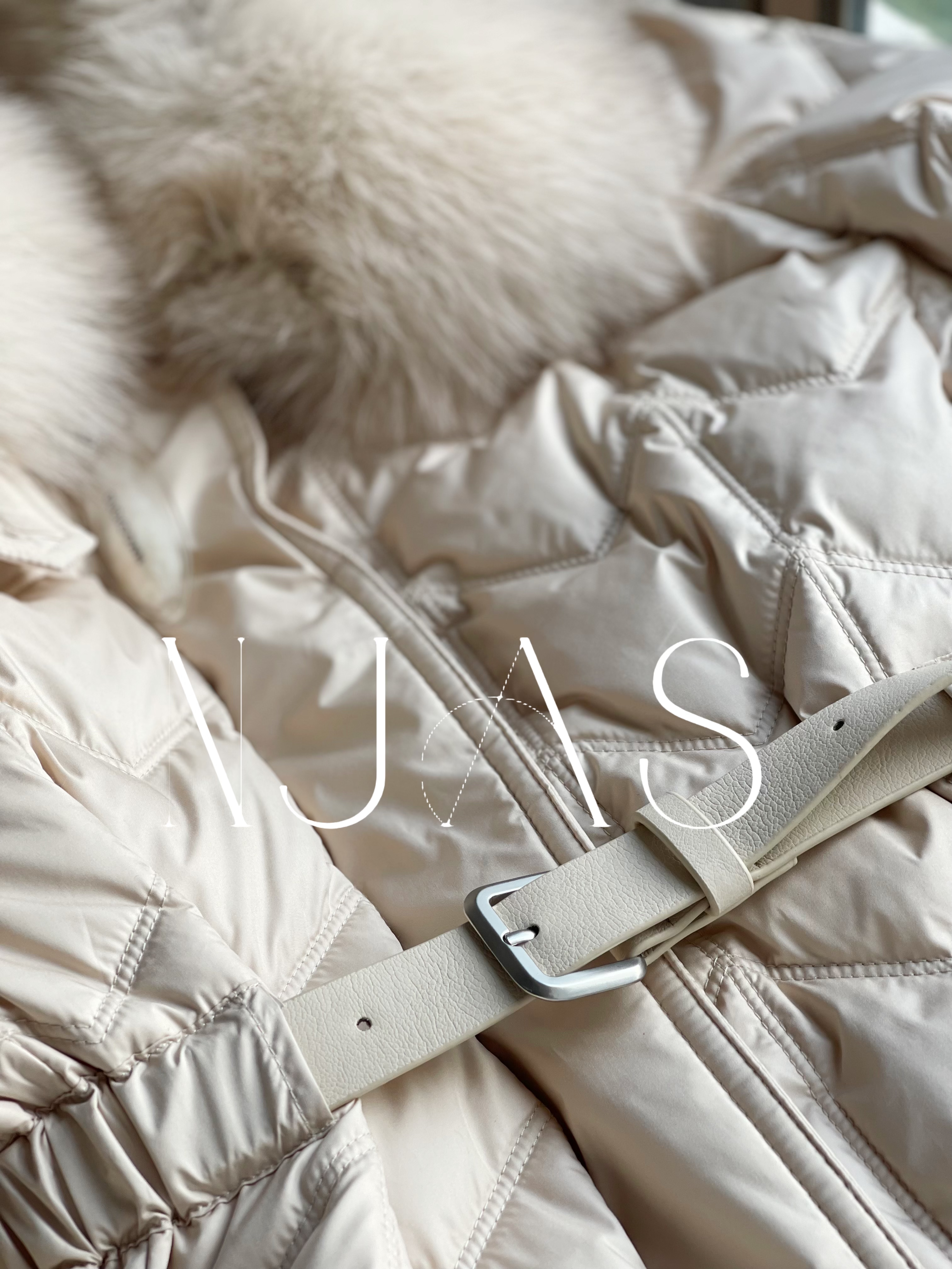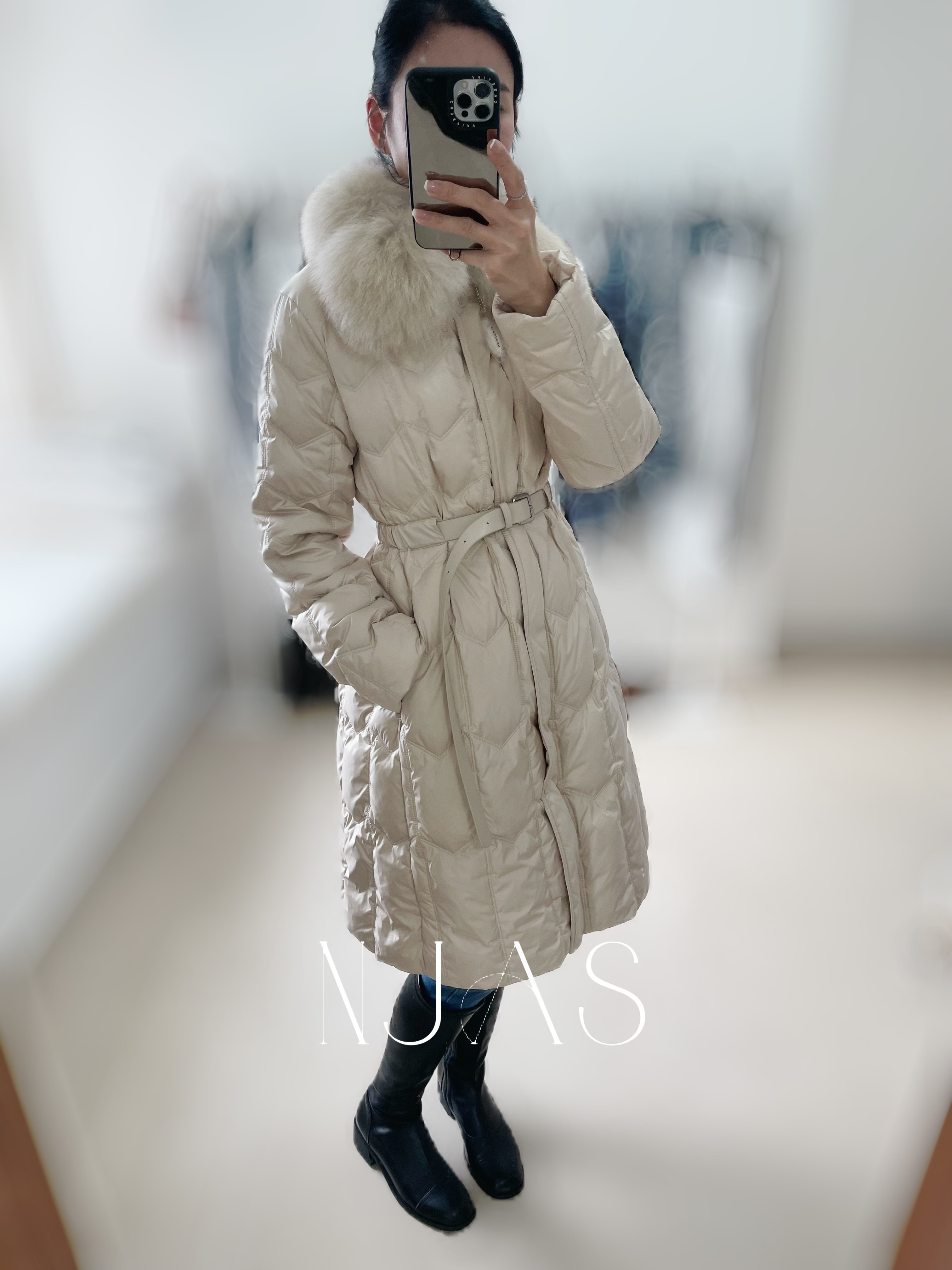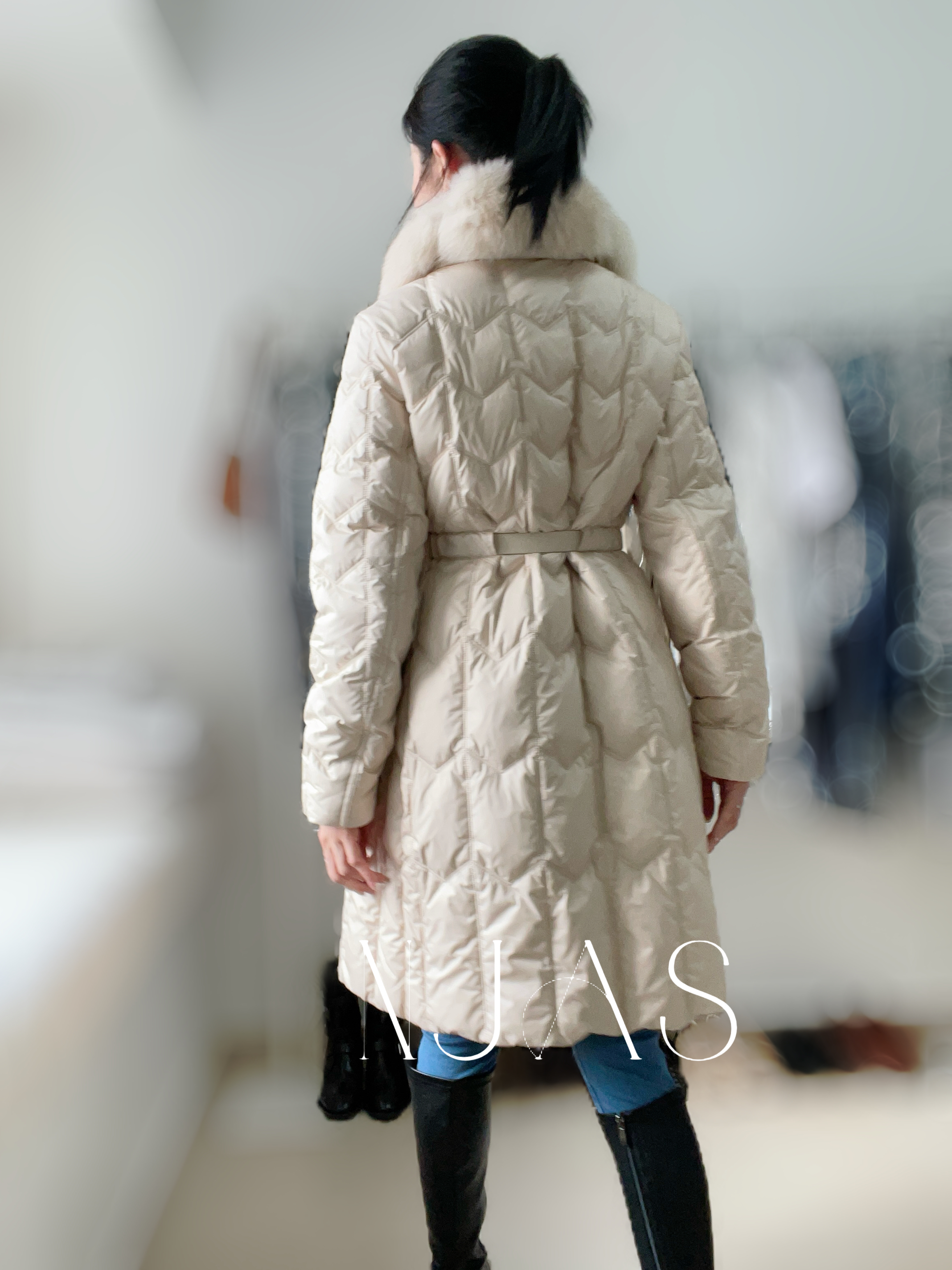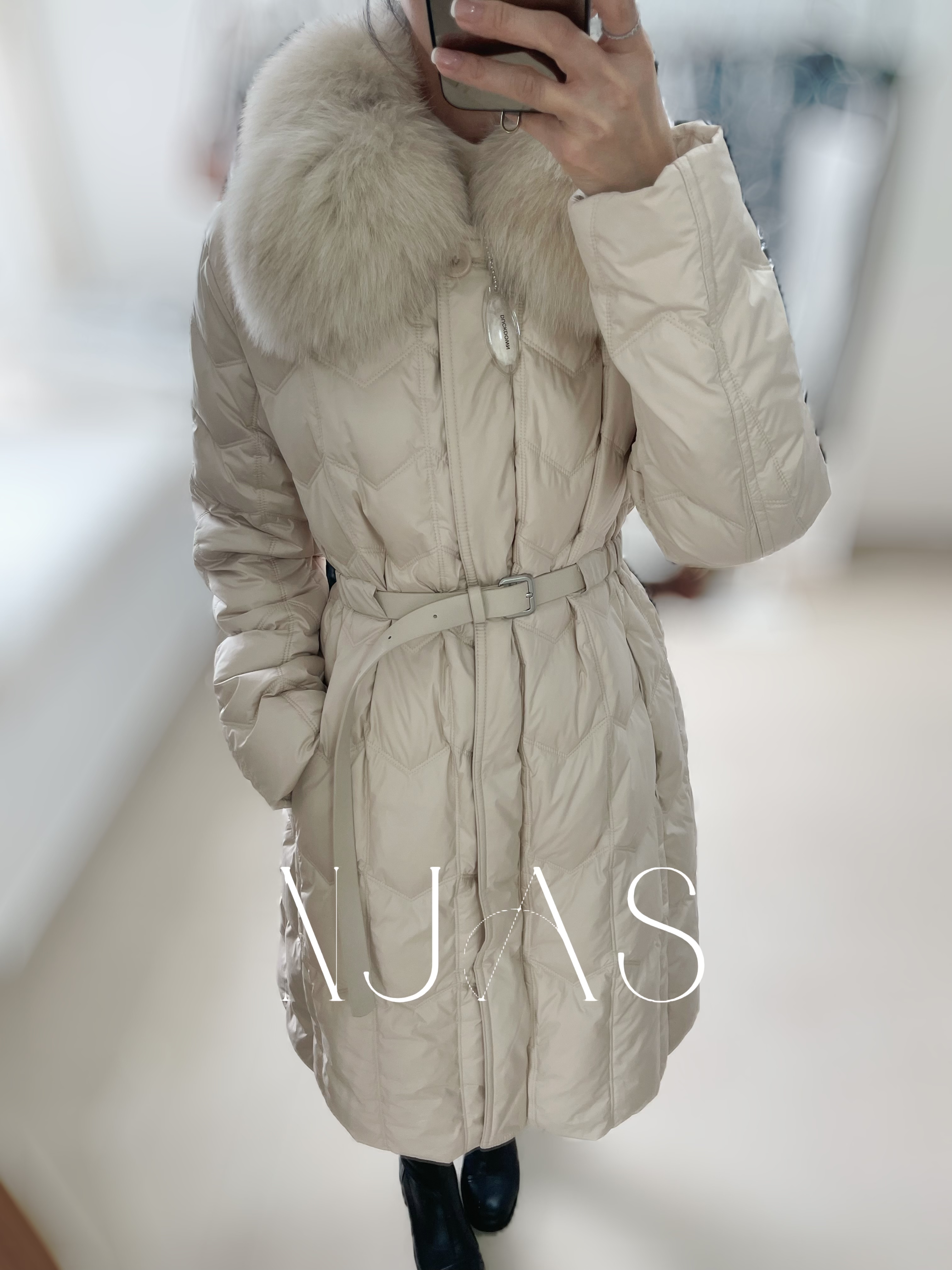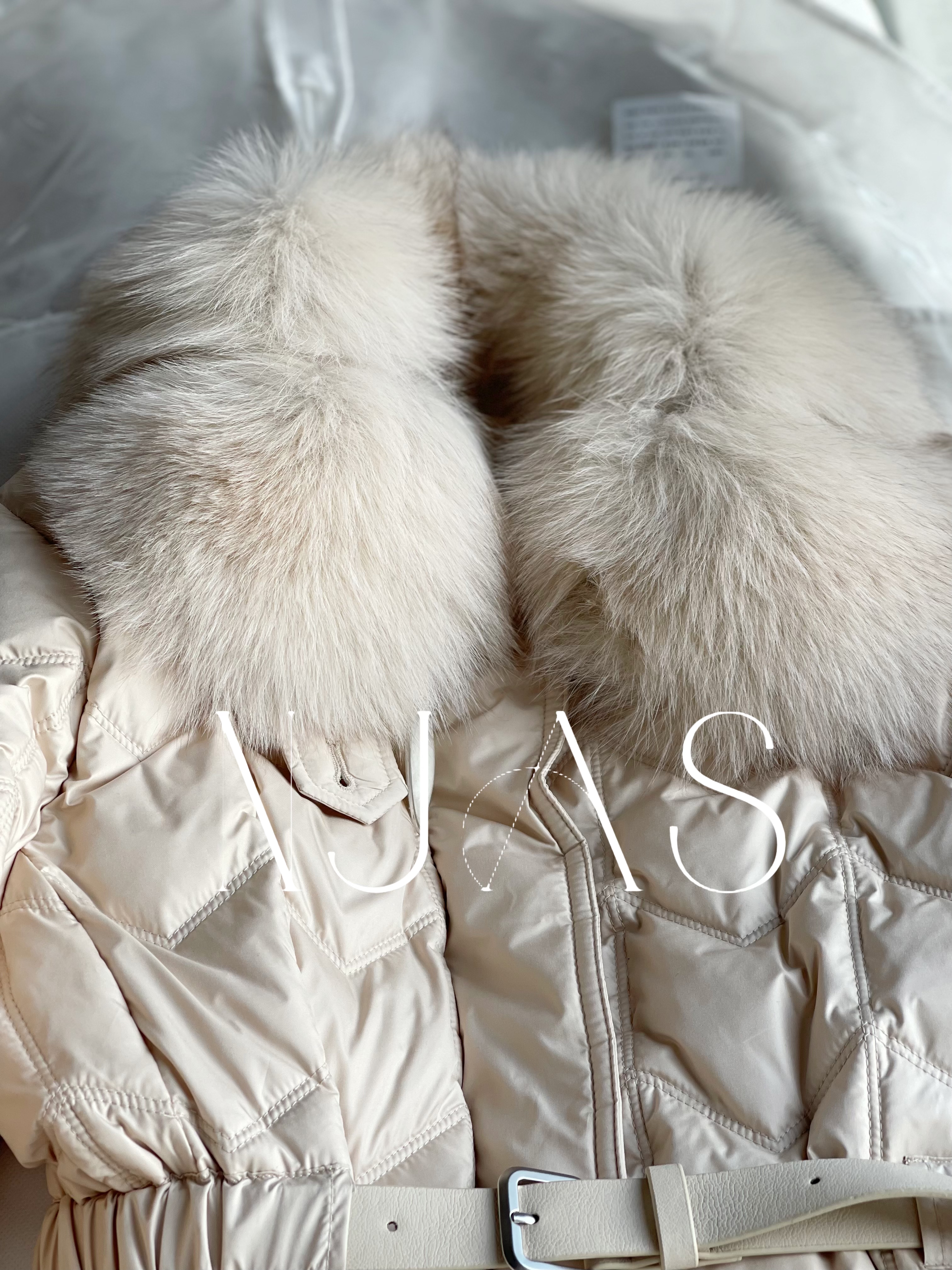MARMEL Elegant Belt Black Fox Fur Down Jacket