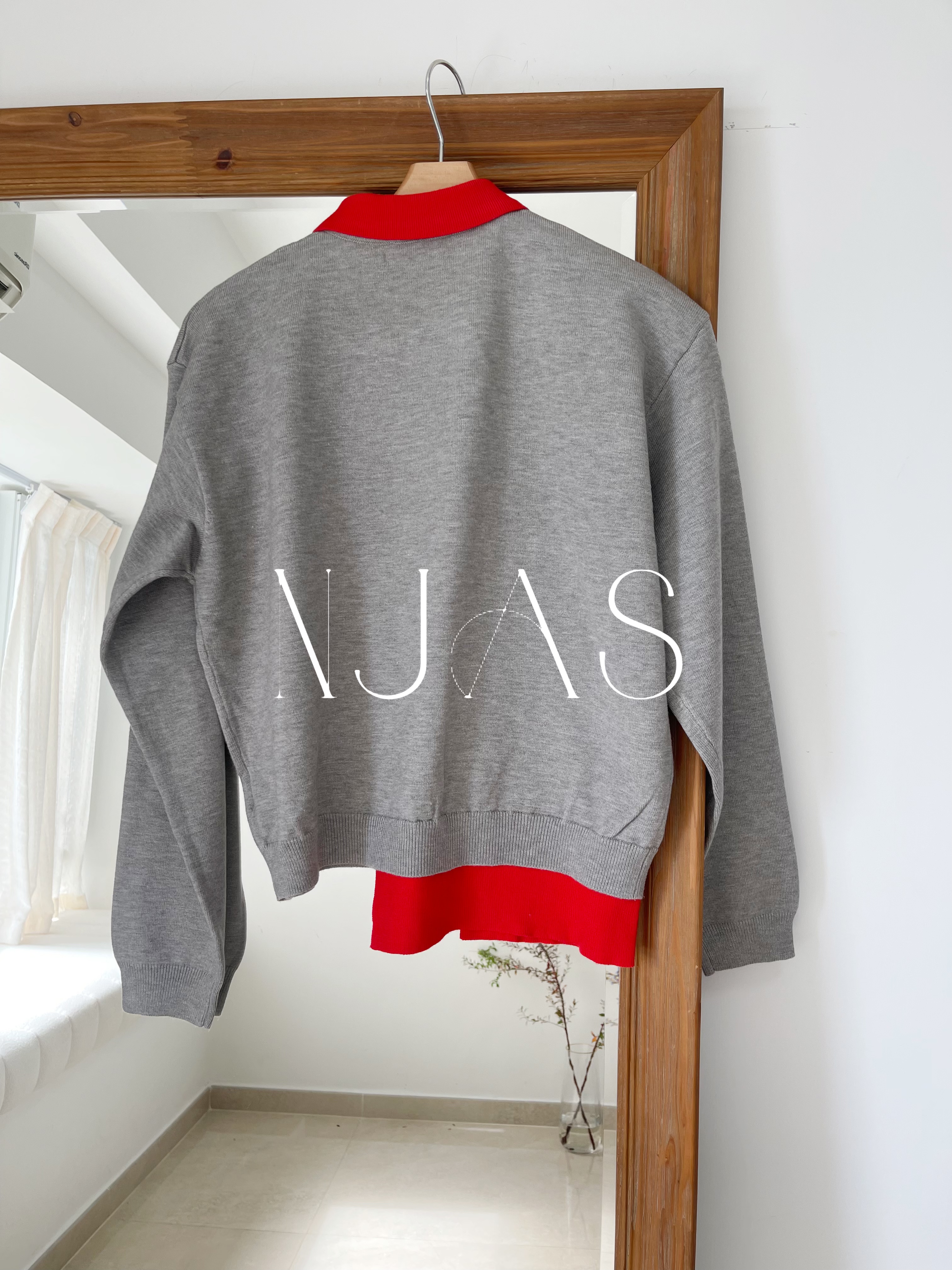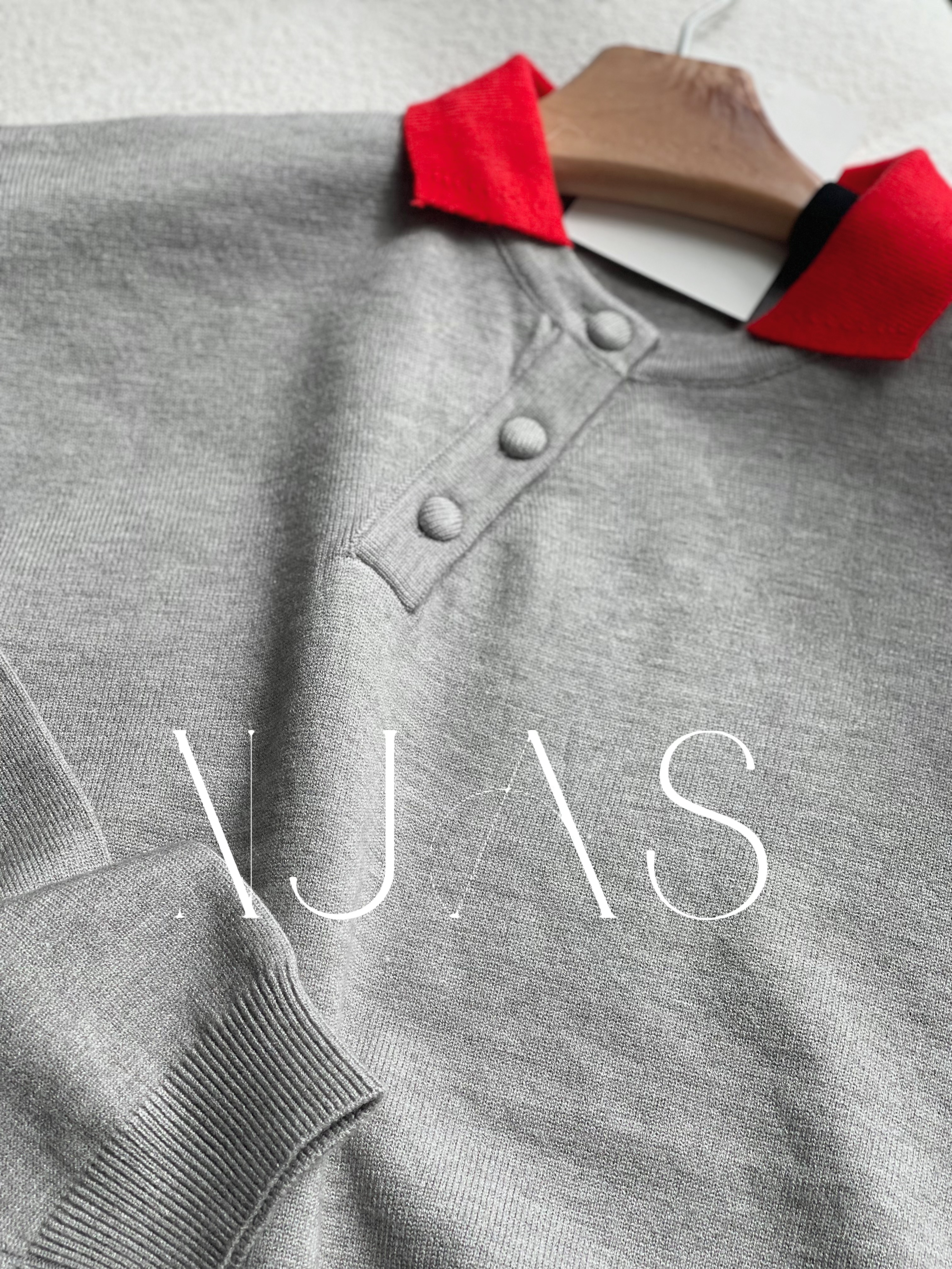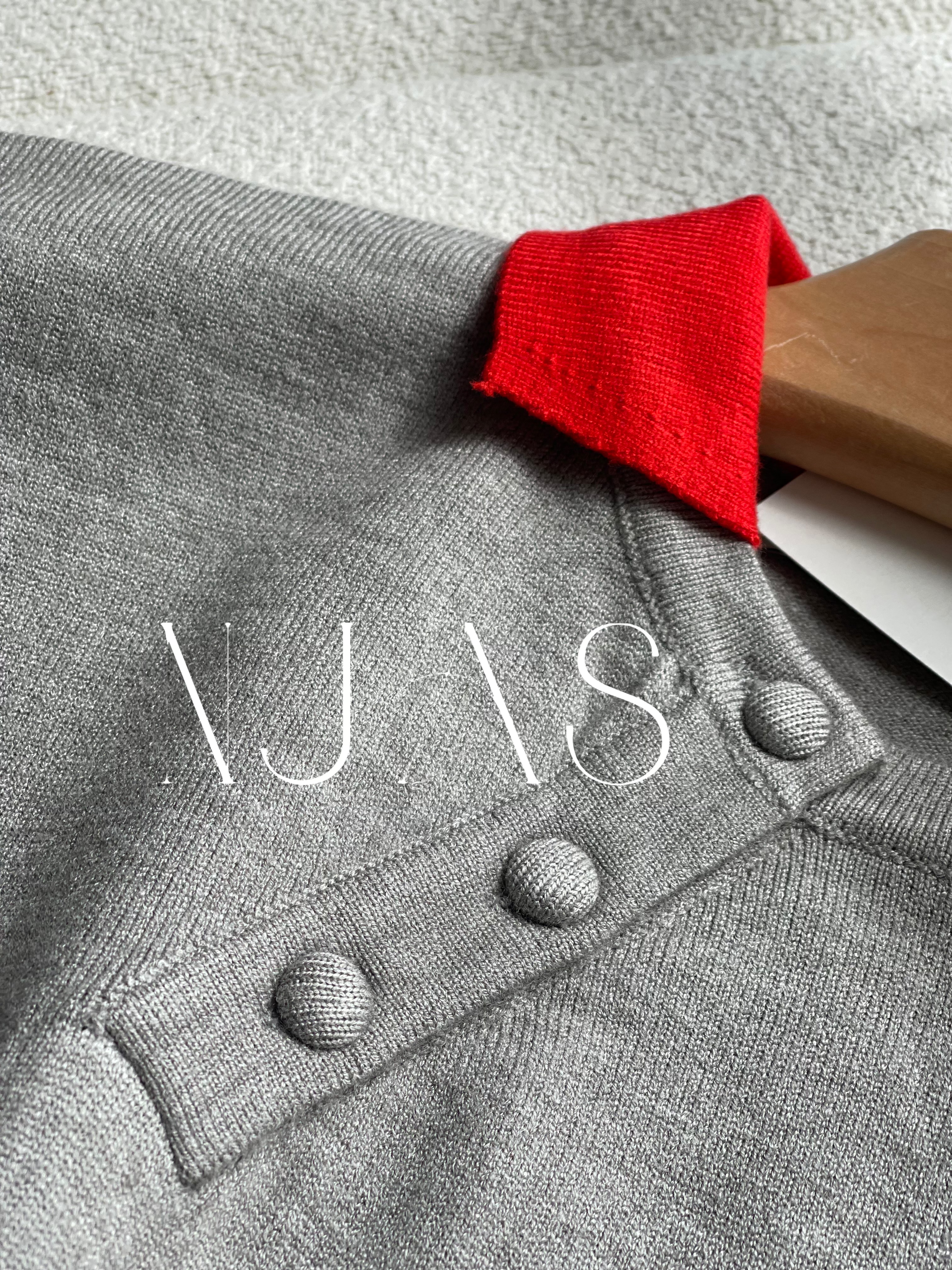 Two tone polo knit top Grey