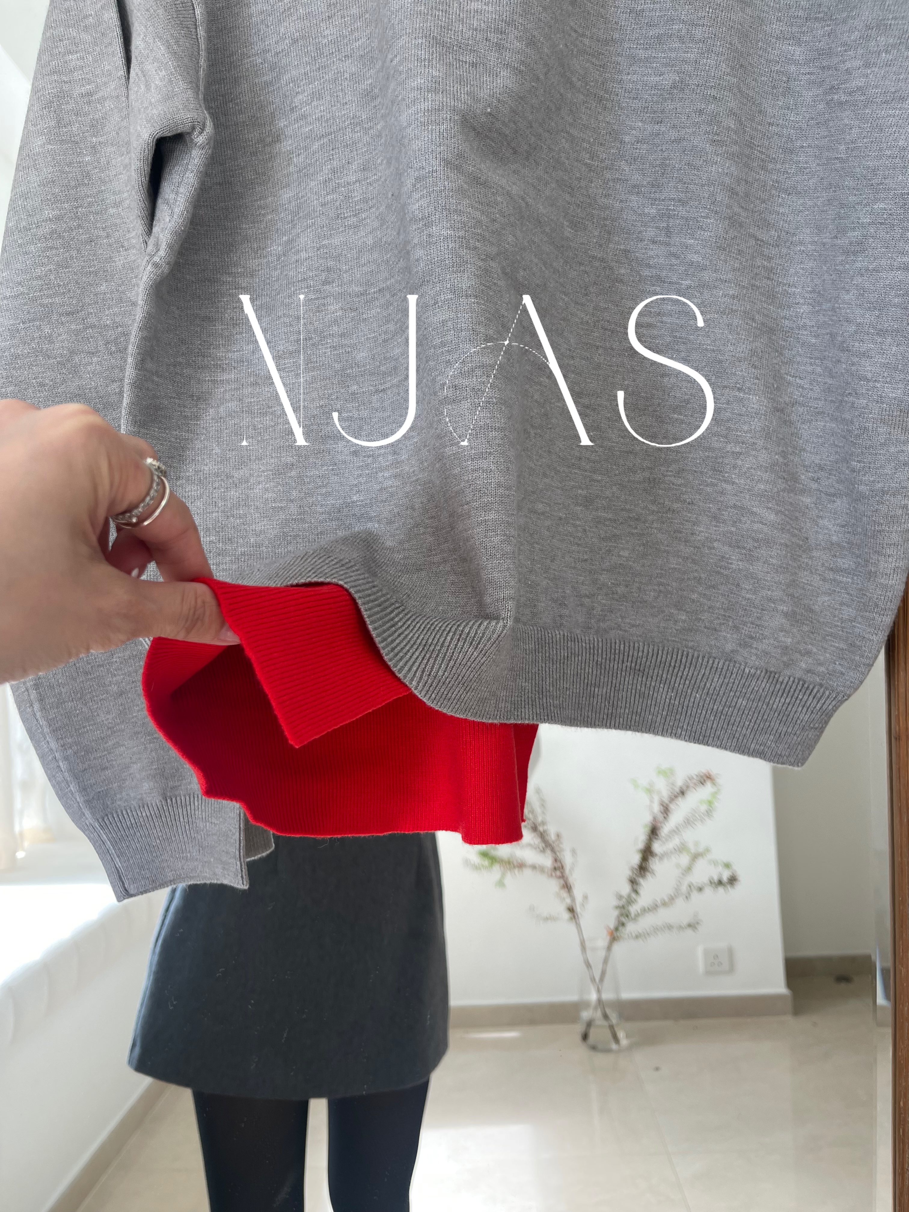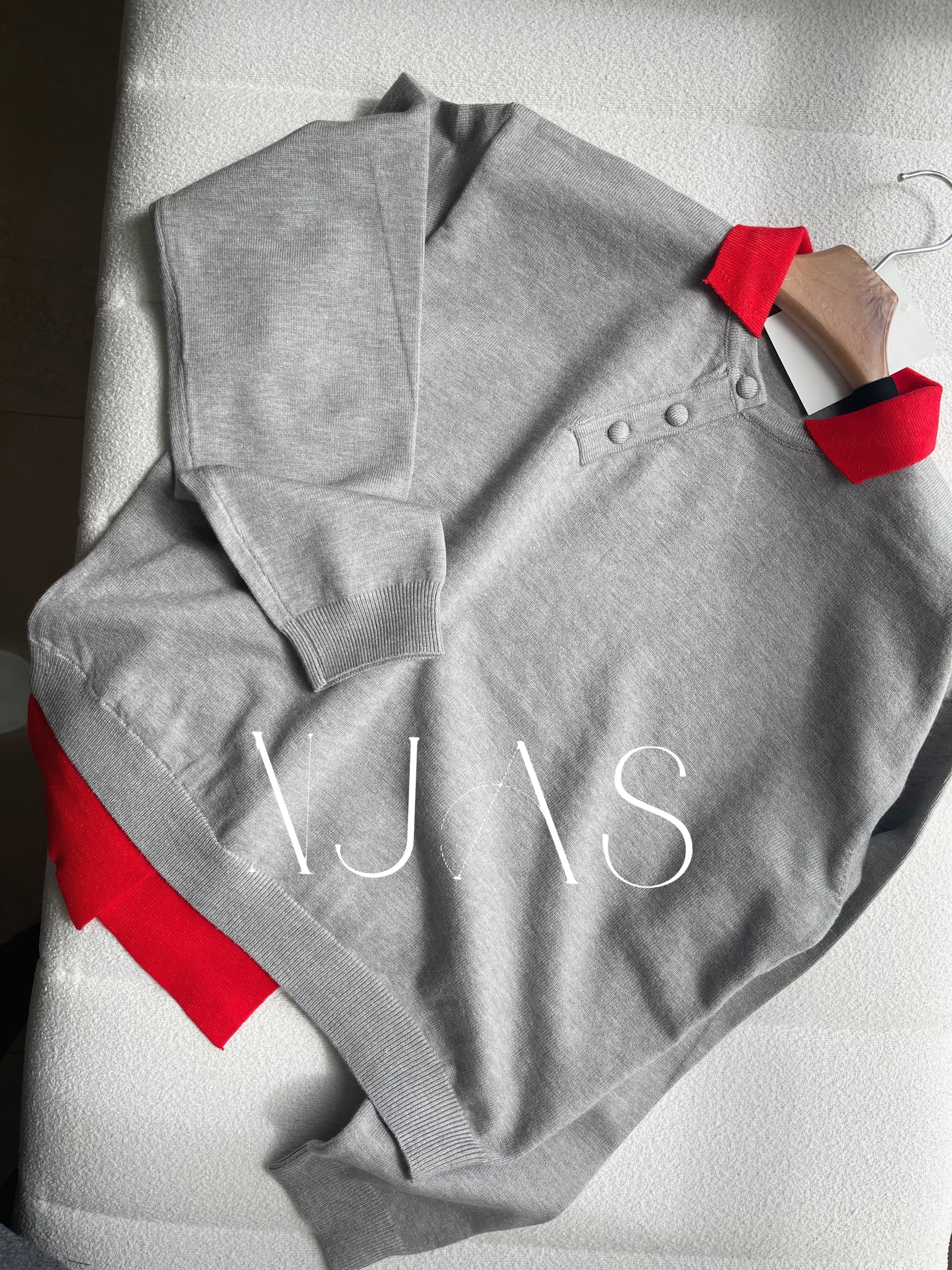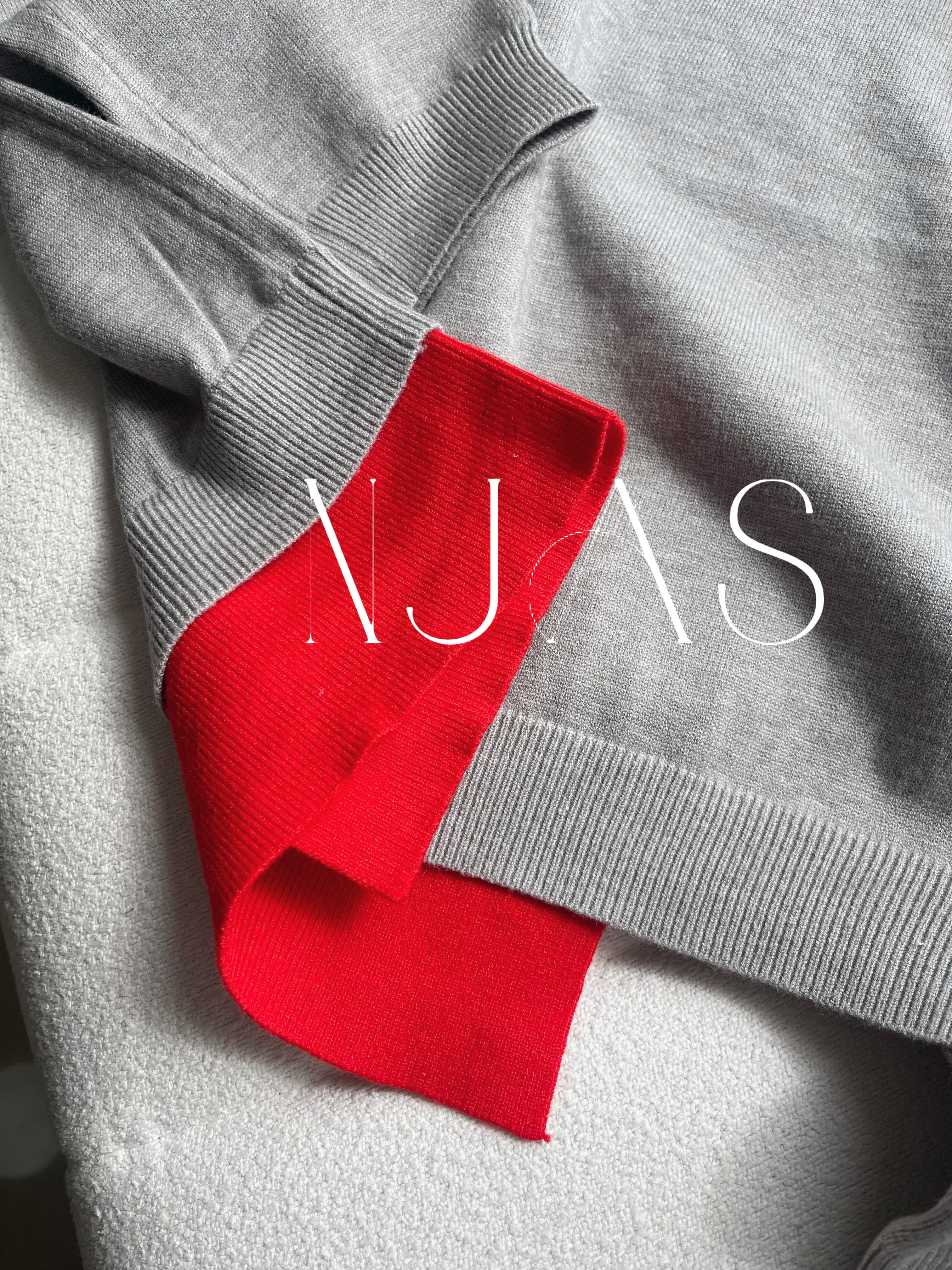 Two tone polo knit top Grey